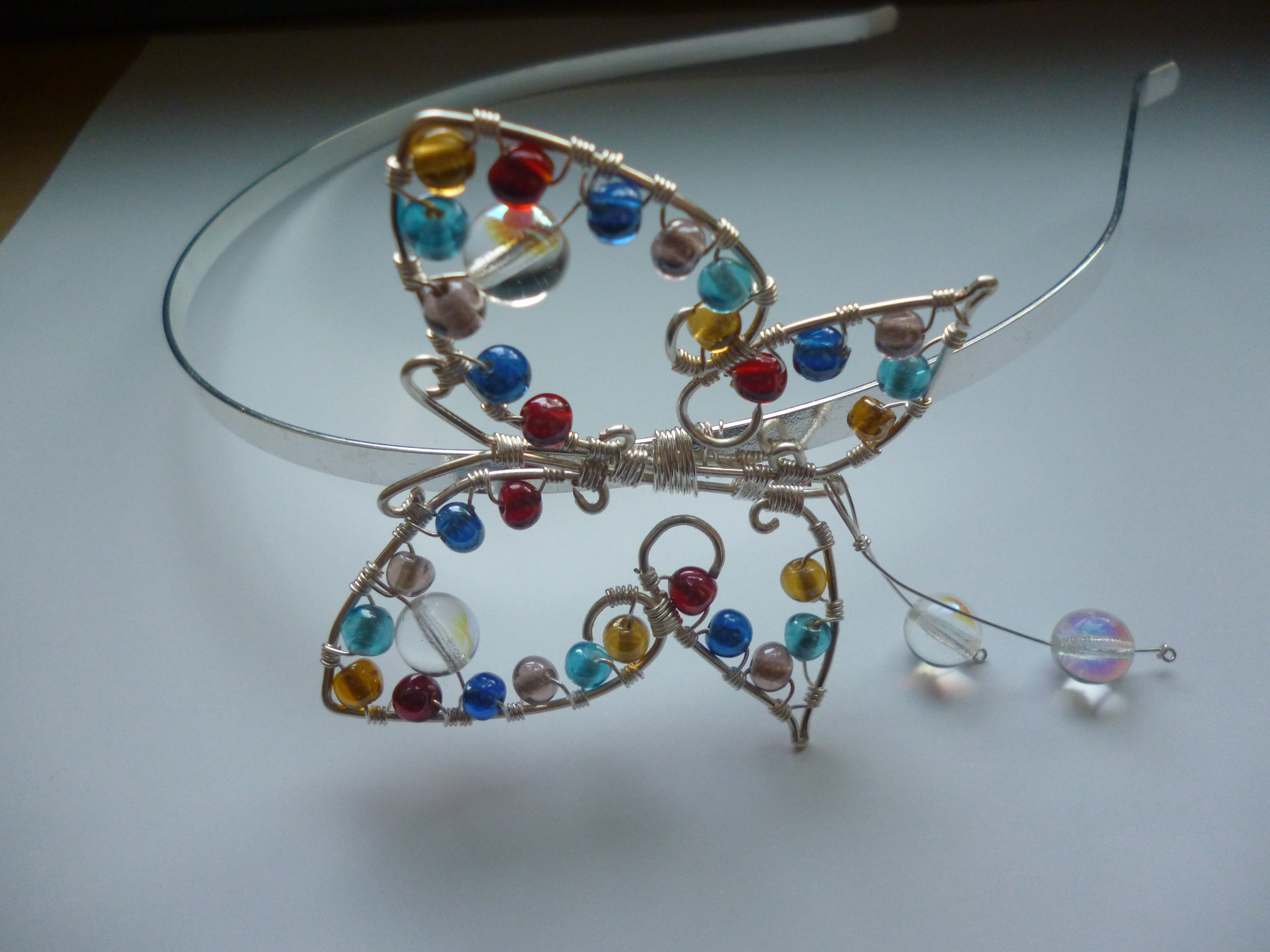 Materials: Assorted beads, 0.40mm silver wire, 1.00mm silver wire, metal hair band