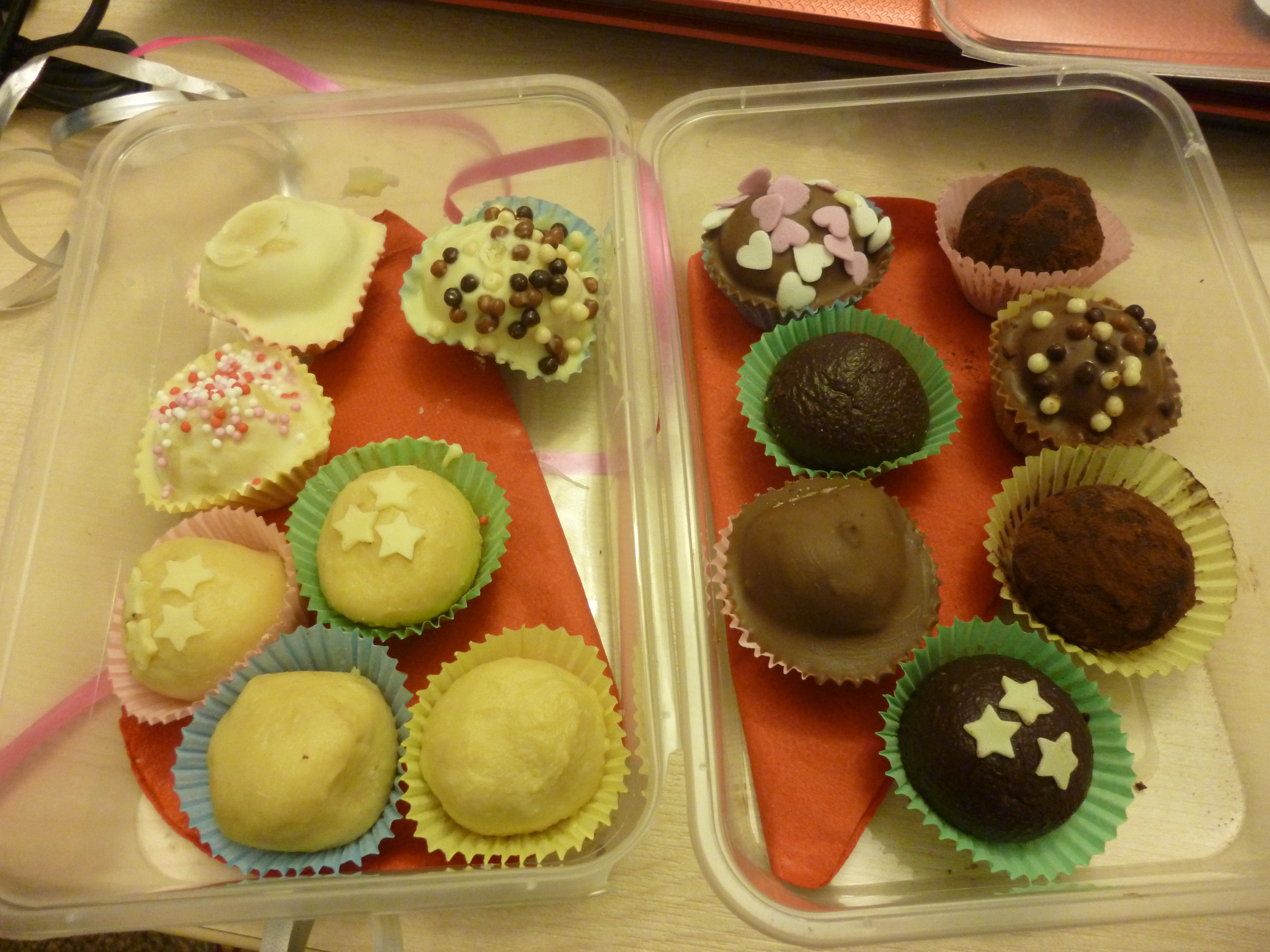 We were given a chocolate base of either white or dark chocolate mixed with cream, and then we had to mix it up with things such as peanut butter, fudge chunks, even chilli powder. After that, we let the mixture settle in the fridge for a few minutes before rolling them up into little balls and decorating them with sprinkles, melted chocolate, cocoa powder… the works, really!