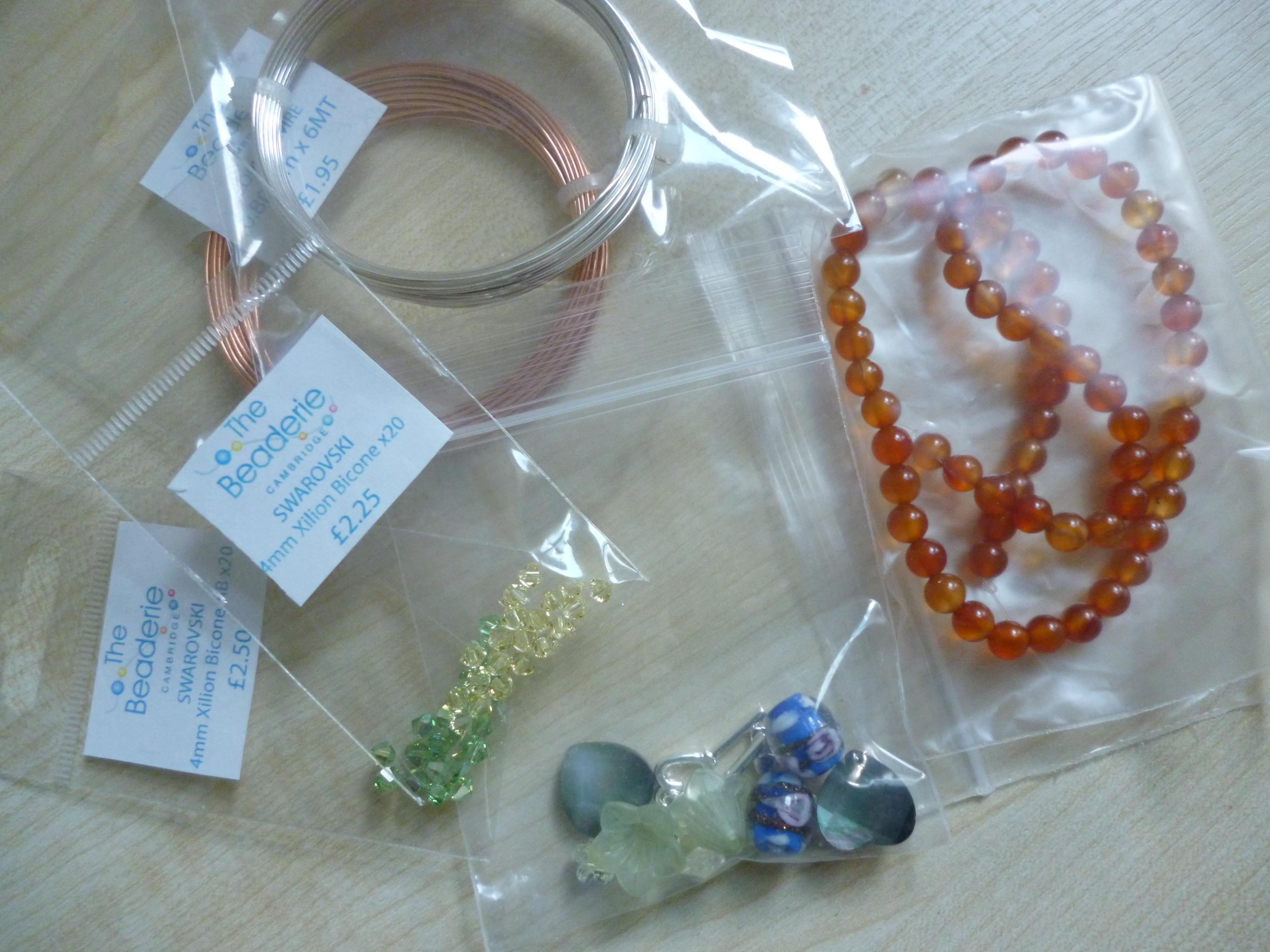 They stock glass beads, faceted beads, silver charms, semi-precious strings of beads, just a lot of things really! Today I needed some copper and silver wire, and just some random pretty beads. They do also stock Swarovski, and I’ve lately been infatuated with them, so I was happy. X3 And the dyed agate really caught my eye. It’s a cheaper alternative to Carnelian which is a semi-precious gemstone.