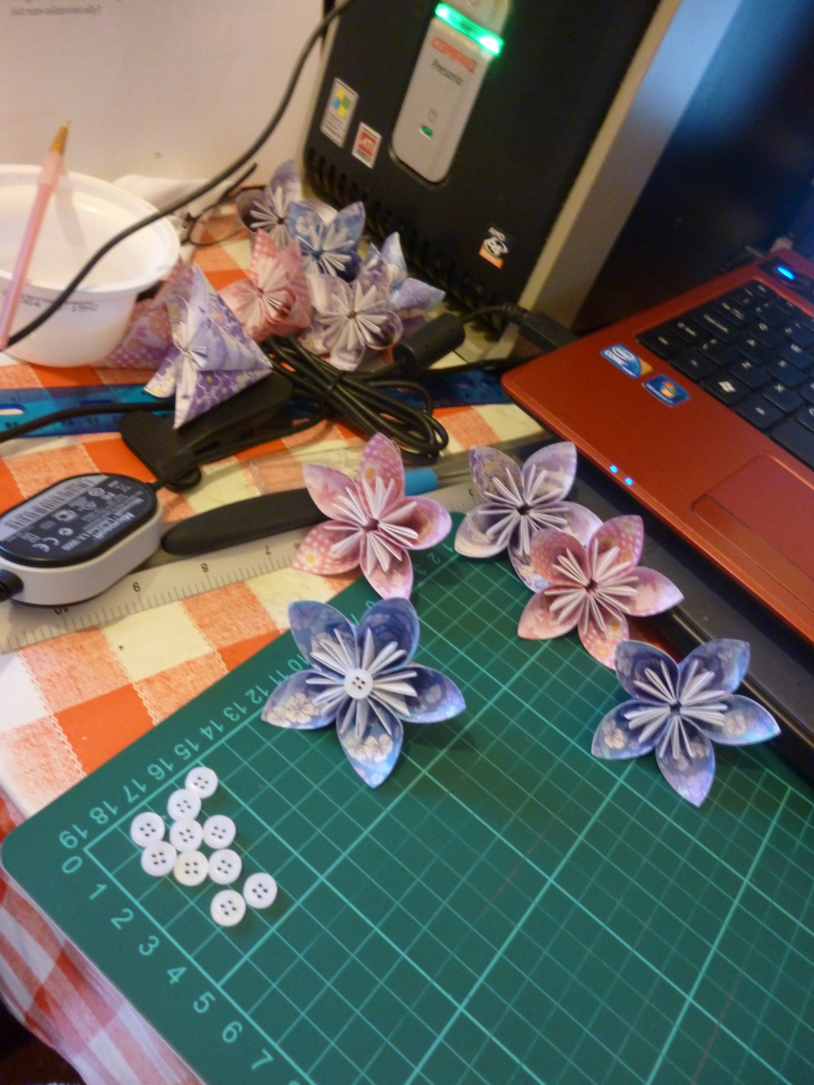 Get some superglue out and attach some nice buttons to the middle of the flower. I chose plain white, I had too many lying around.