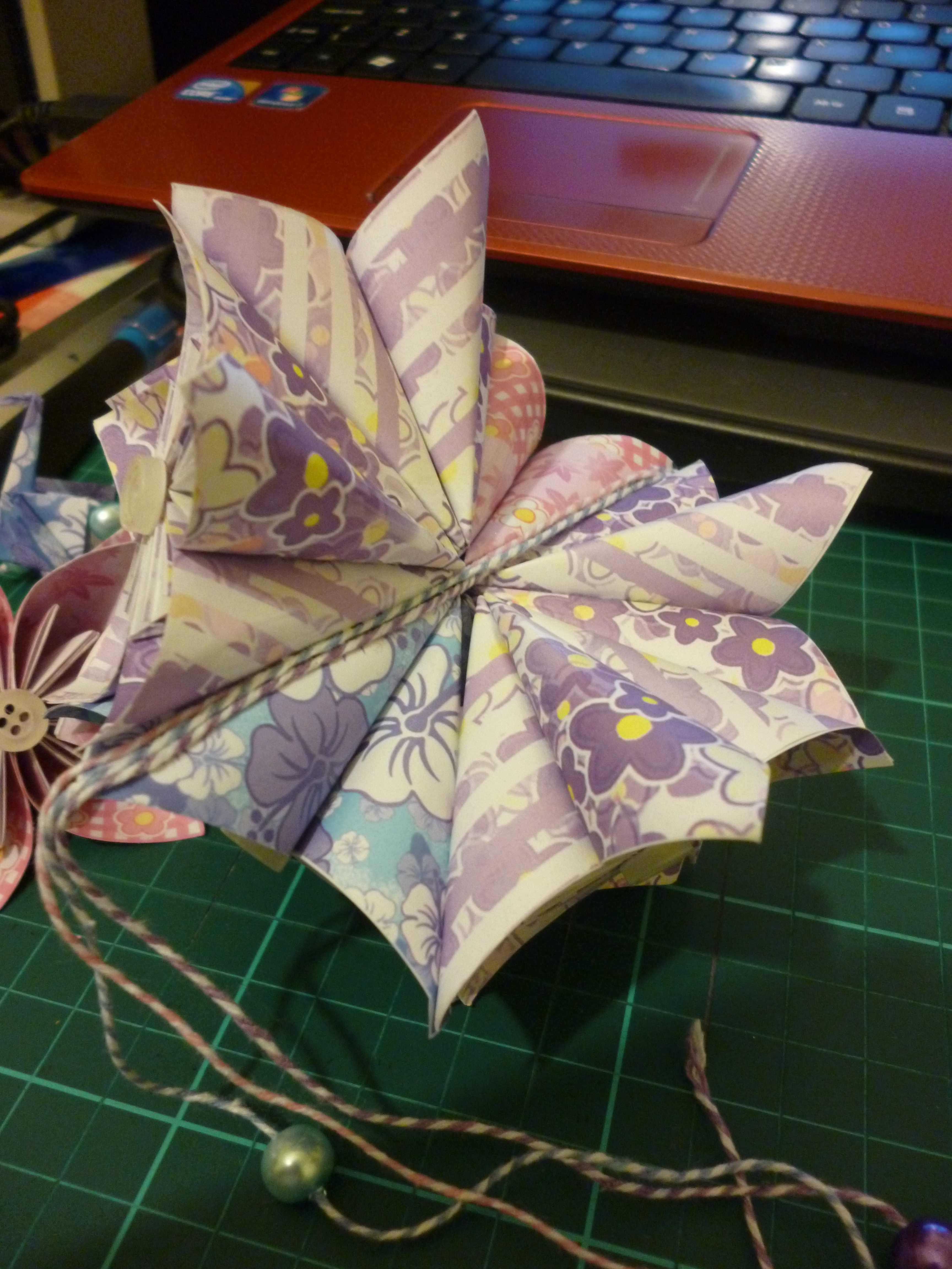 Firstly, create your twelve units! Pretty paper is the best choice, I used floral. And opt for two, or six colours. Not three… It’s hard to coordinate.
