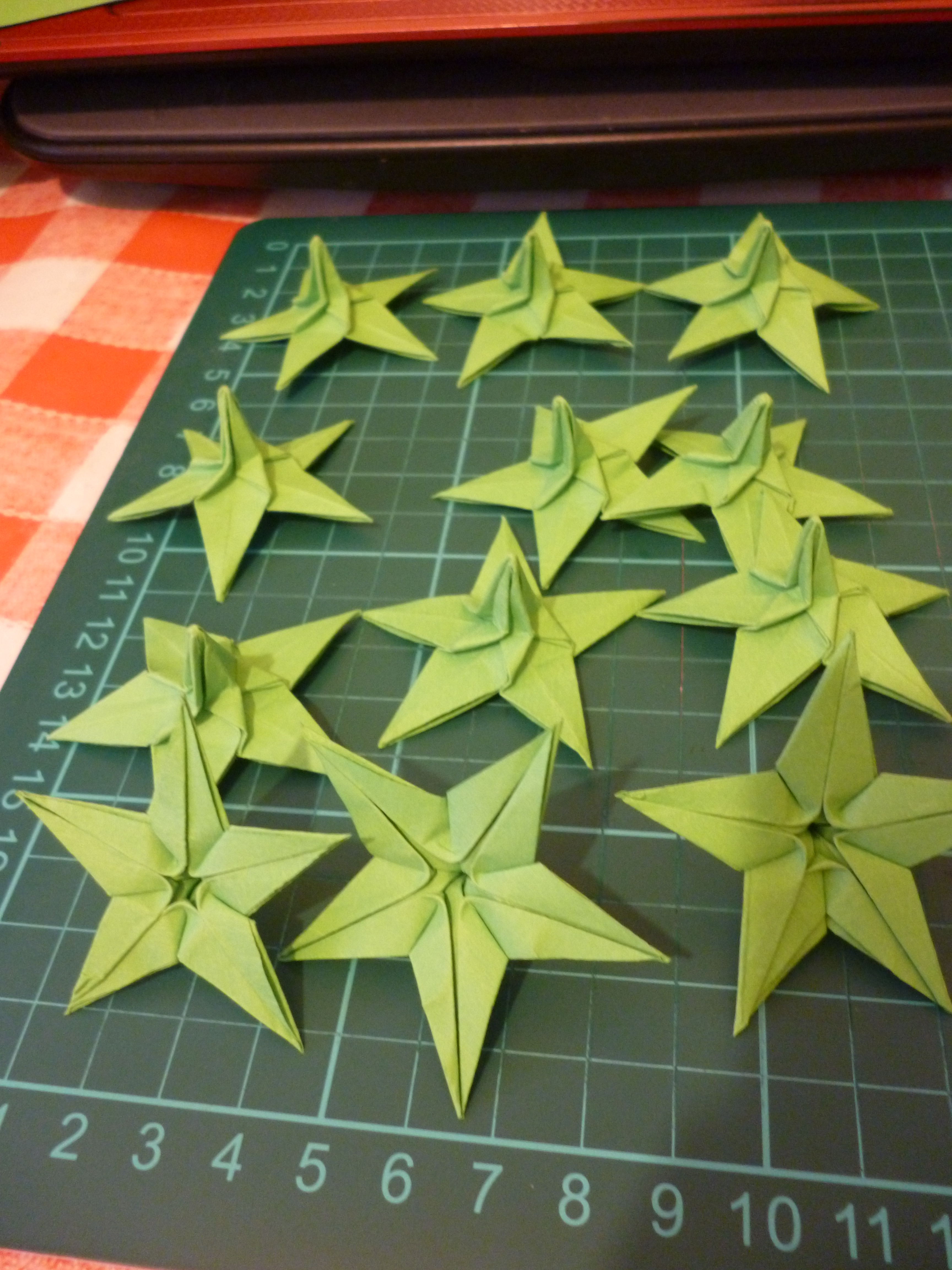 Once you have your pentagons cut out, start making your roses! It turns out a pentagon cut from a 15cm square actually makes a fairly small rose. For future reference, it would be nicer to make roses out of larger paper, but this will have to do for now.
