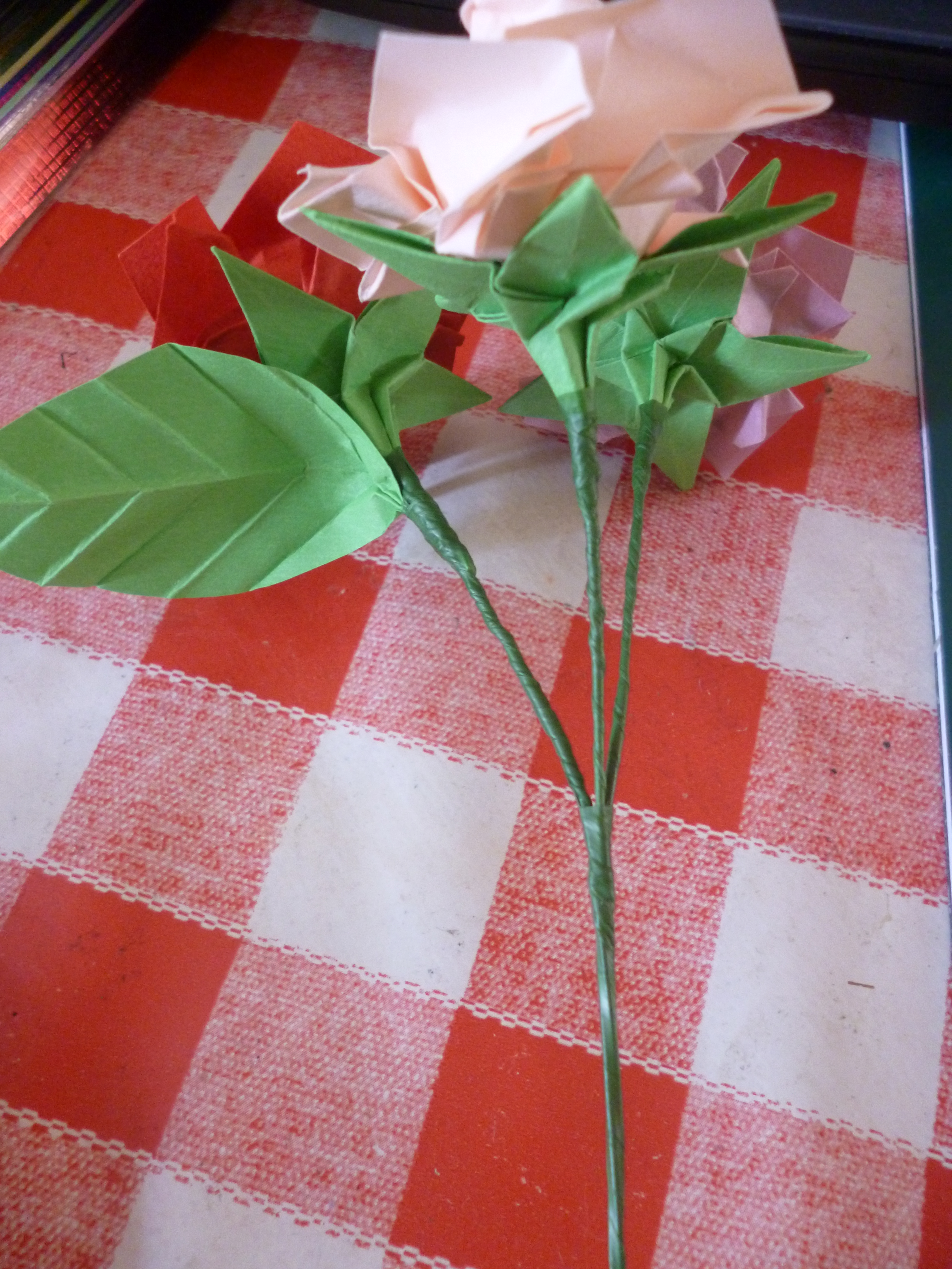 For the past month or so, I’ve been learning the art form of the Naomiki Sato rose. No kidding! It’s a very difficult flower to make. Photo tutorials never did it for me, but I finally came across this video (part 1) which shows how to make a rose with as few creases as possible; it’s very good, I recommend trying it for yourself! It is recommended to try a few (or even a lot, haha) practice ones before you really try it with the nice pretty paper like I use it today’s tutorial. 🙂