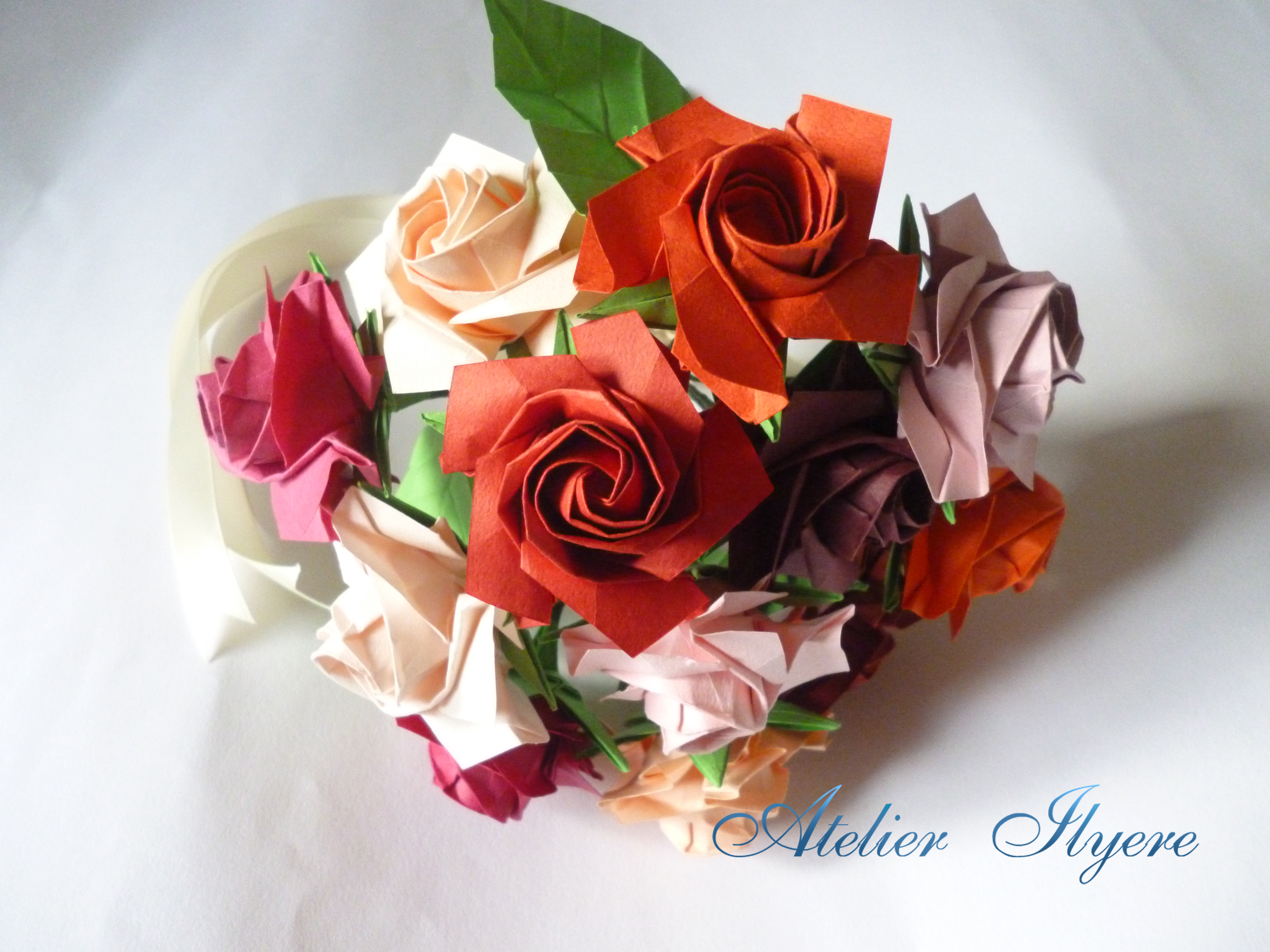 For today’s bouquet, I have a pack of red and pink Tant paper in twelve different colours and size 15cm squares, similar to the blue pack that I used in the kusudama tutorial. Red is made for a rose!