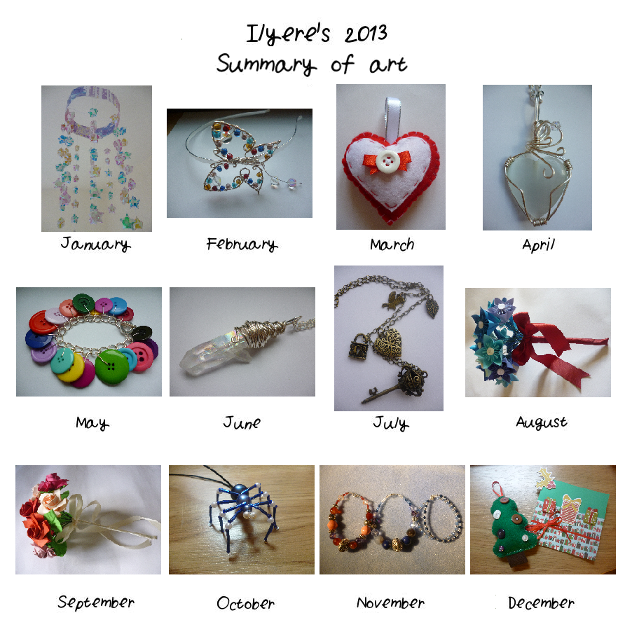 2013 has been a good year for me. I made some new things that year such as wrapped bouquets and hairbands, as well as improving my skills in things such as pendant wrapping. Being determined to learn a new craft every year is a good New Year’s resolution, if you’re the kind of person who does that sort of thing. This year, I have plans to make more Fimo charms and maybe learn to sew larger plushies.