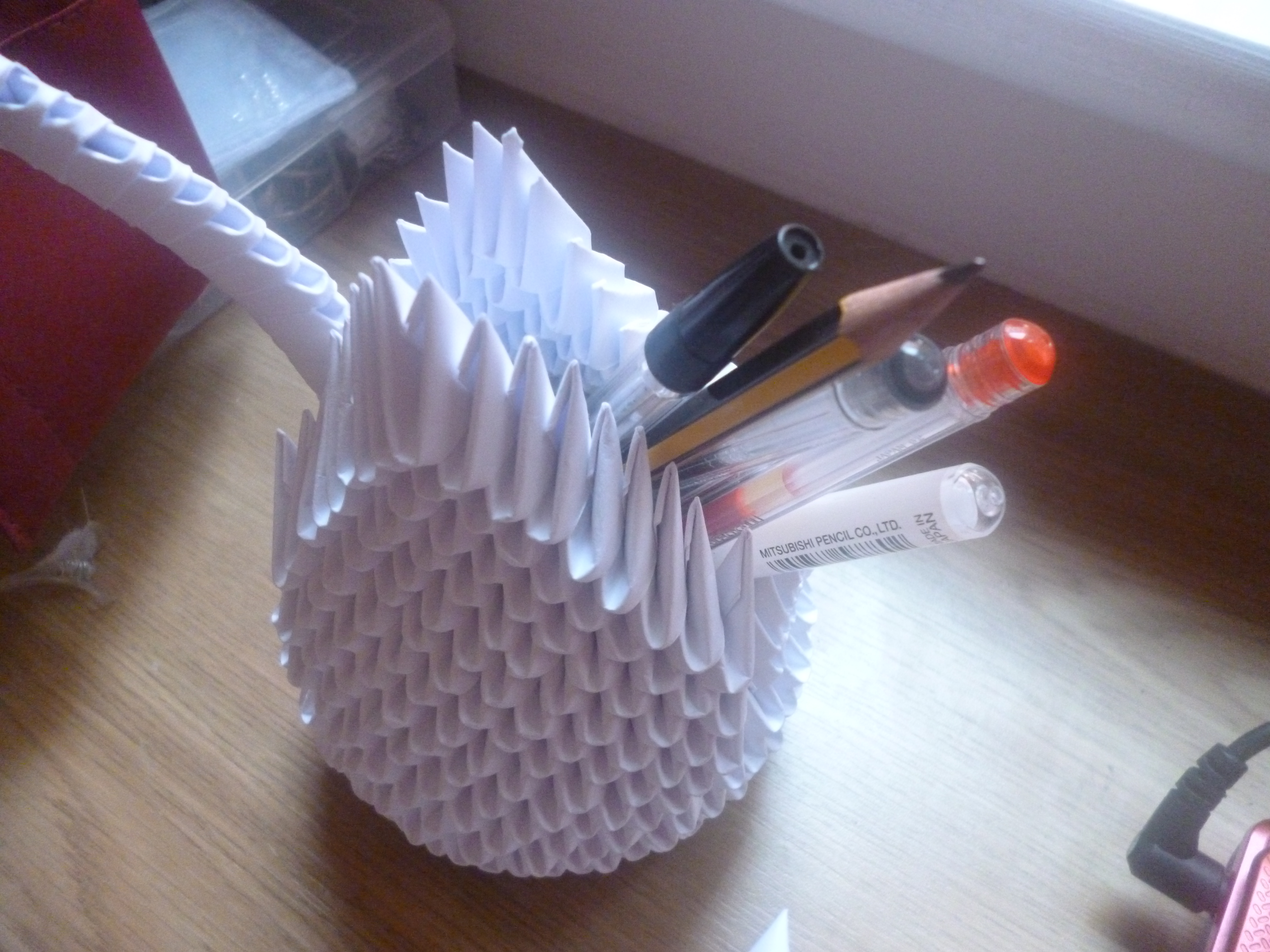 Of course, this part is totally optional, but sometimes I like a little functionality in my decorations! Now my dear swan holds my pens and pencils for me. And because the wings are so close together, it kind of fans out the pens so it organises my collection pretty well, haha.