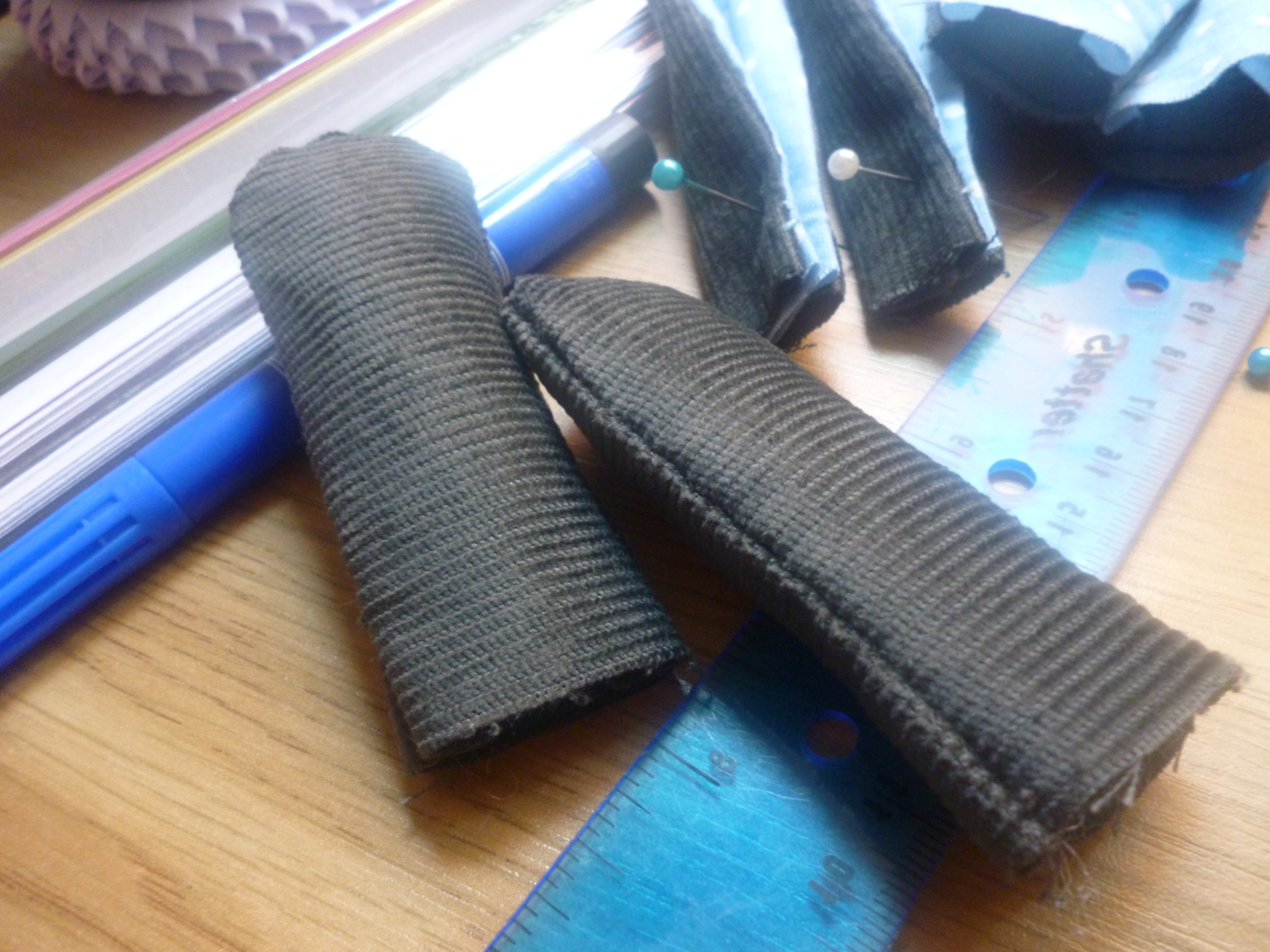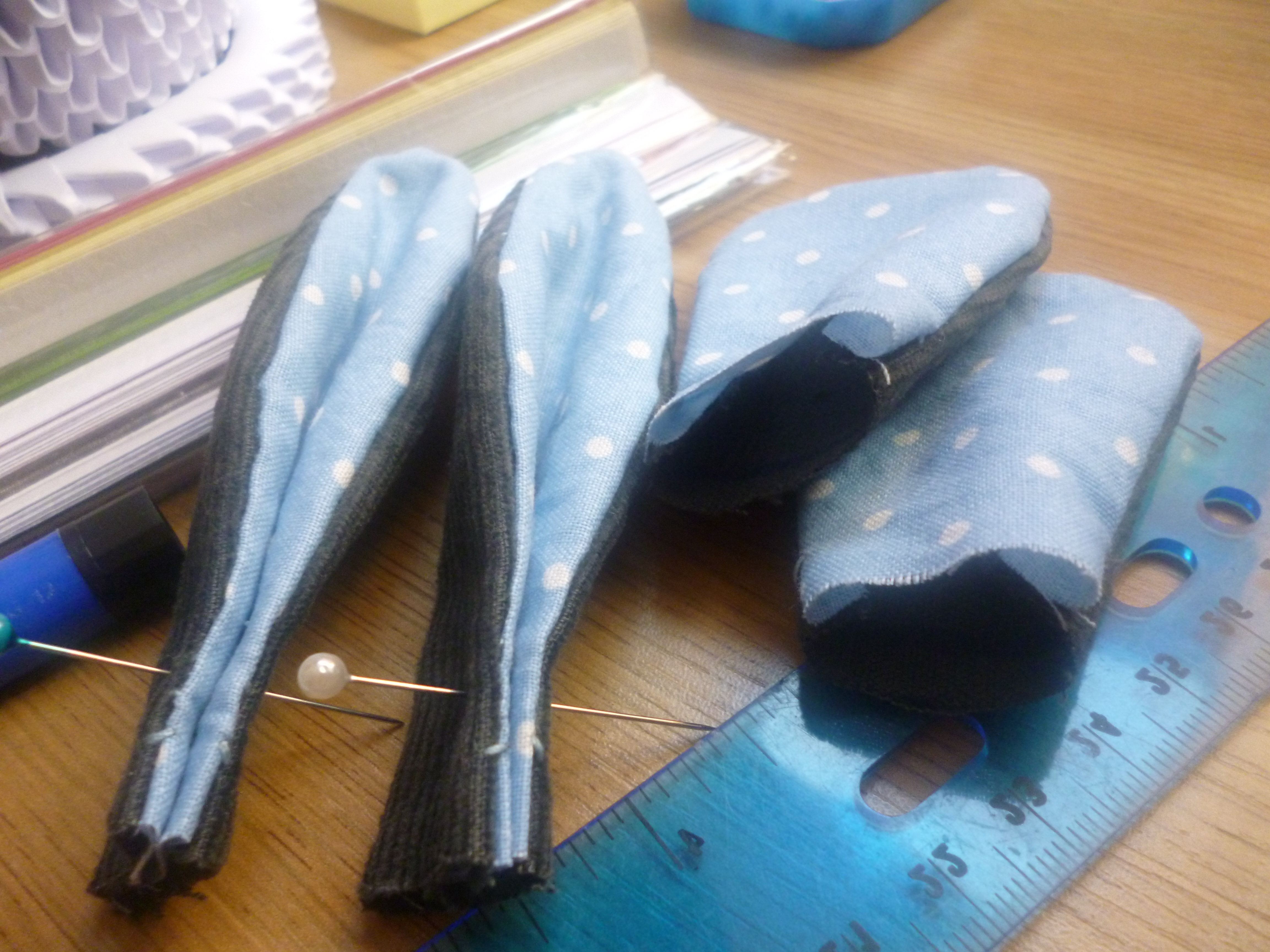 Here are the ears, after sewing the matching fabric and turned inside out.