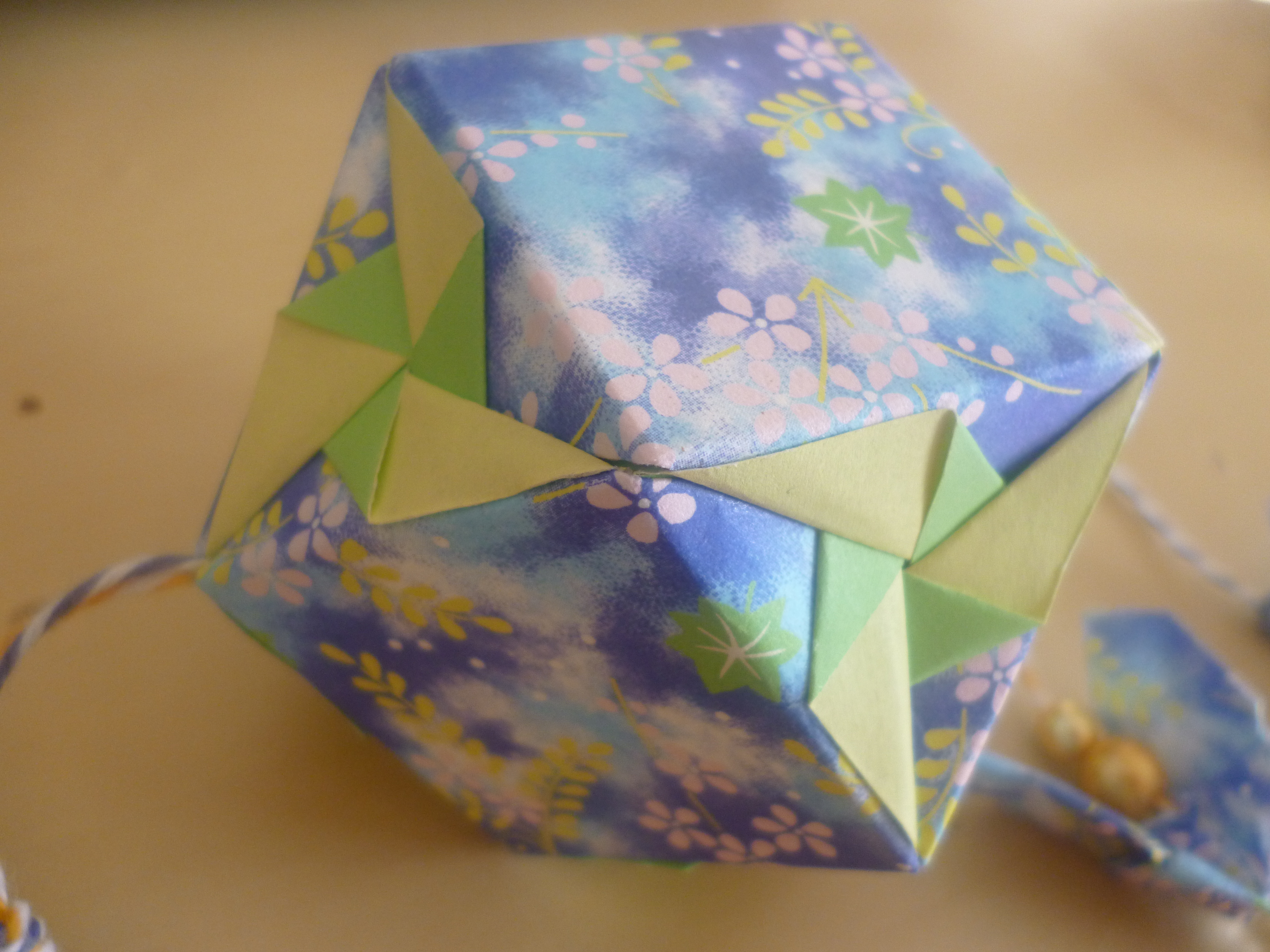 I bought this book a year ago by Tomoko Fuse (布施 知子) called “Kusudama Origami – Hanakiriko” (くす玉おりがみ – 花切子). I can read what the Japanese says, but I don’t know what it means! Fortunately, the book uses diagrams rather than explanations to construct models, hence why I bought it. Some of the models are pretty impressive, and recently I managed to make some of the models.