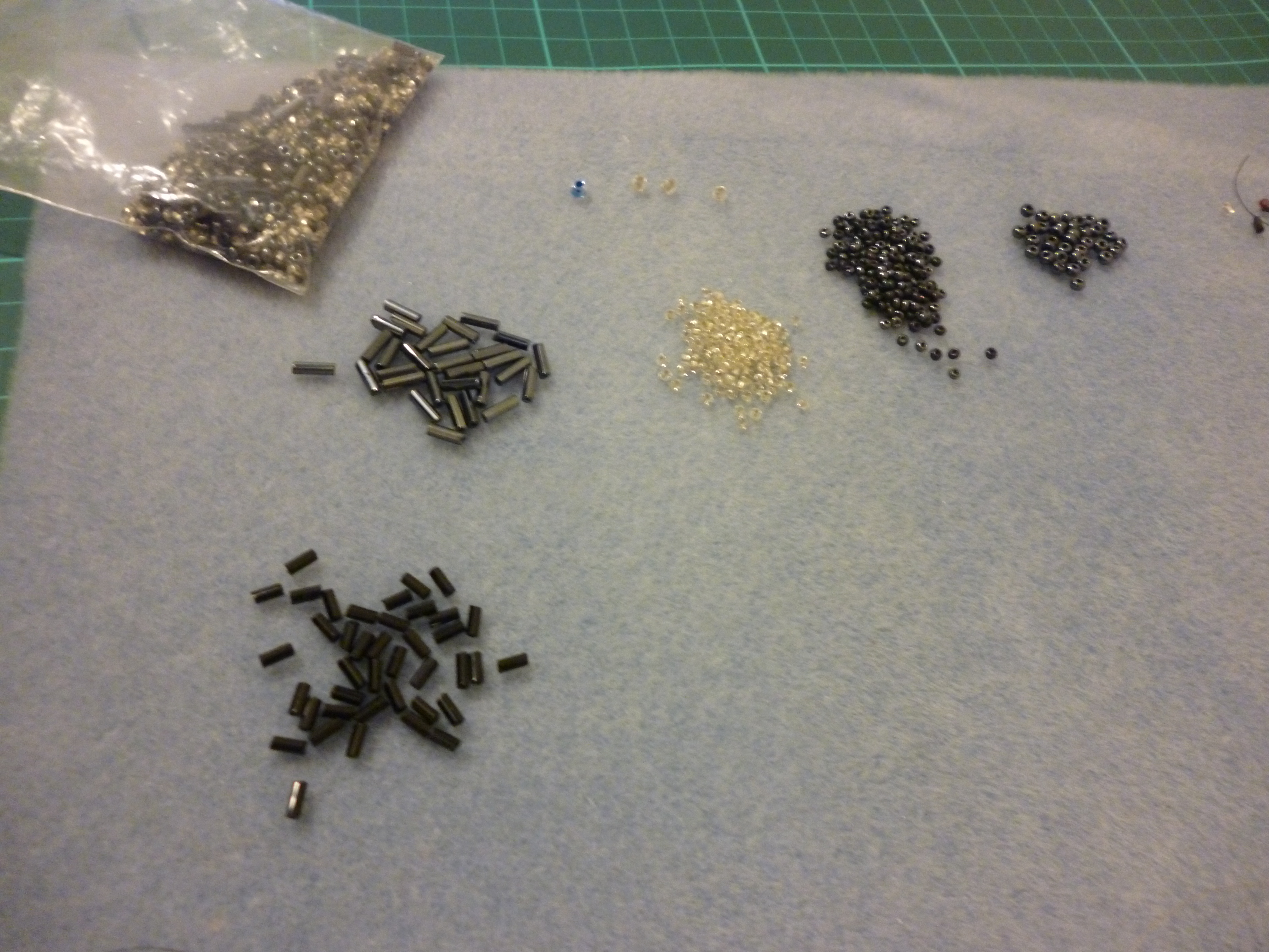I like the silver and black colour scheme, and this pattern can be adapted to others of your choice. Here’s to my quest to learn more beading stitches! One thing I would have changed here is that I used black beading thread which does sort of show up under the clear beads, but I did not have any to test with.