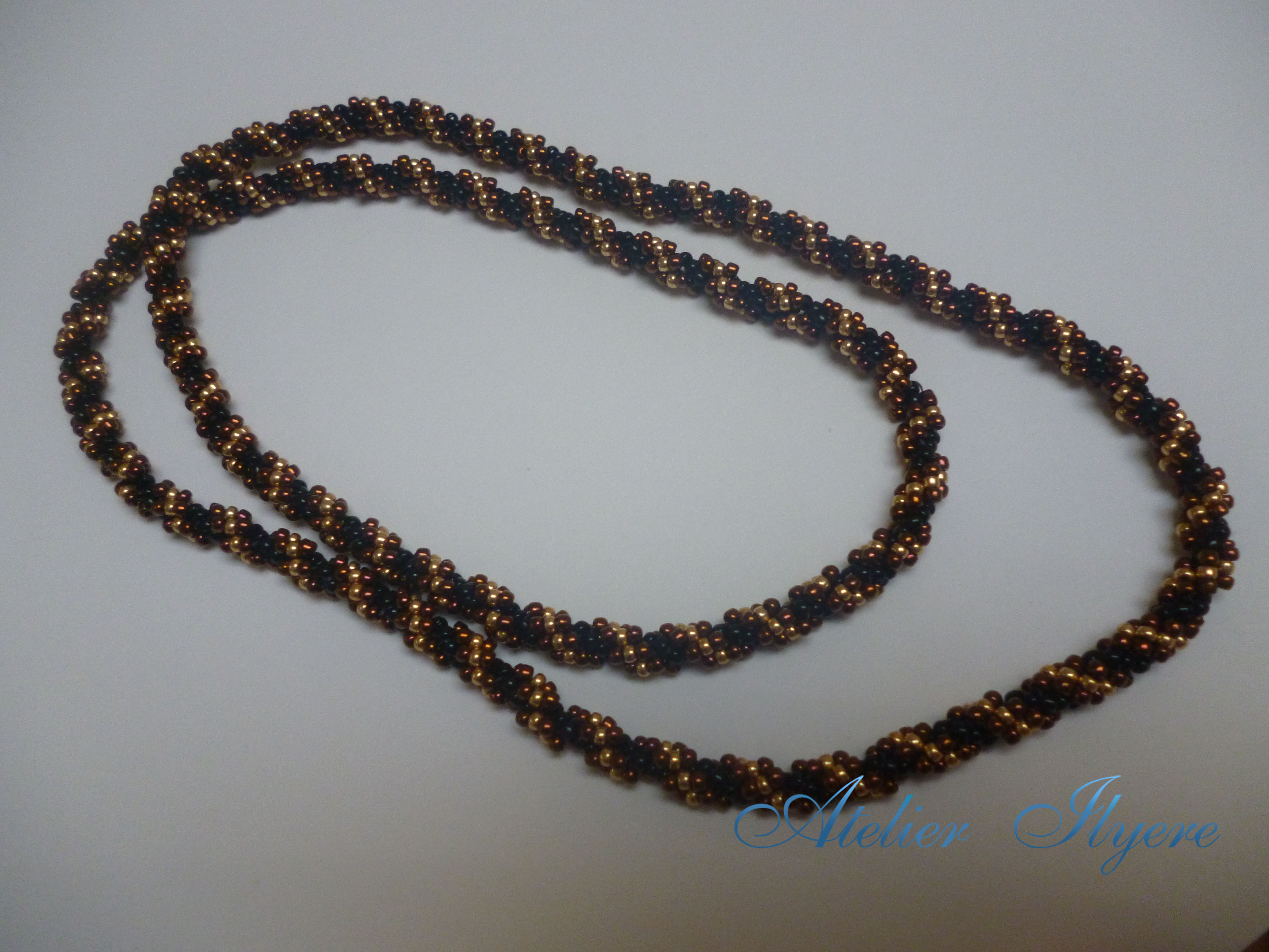 This particular version does not have a clasp, so the necklace had to be long enough to go over my head. The stitch joins seamlessly together. A lot of thread went into this! I must have cut at least nine metres of thread.