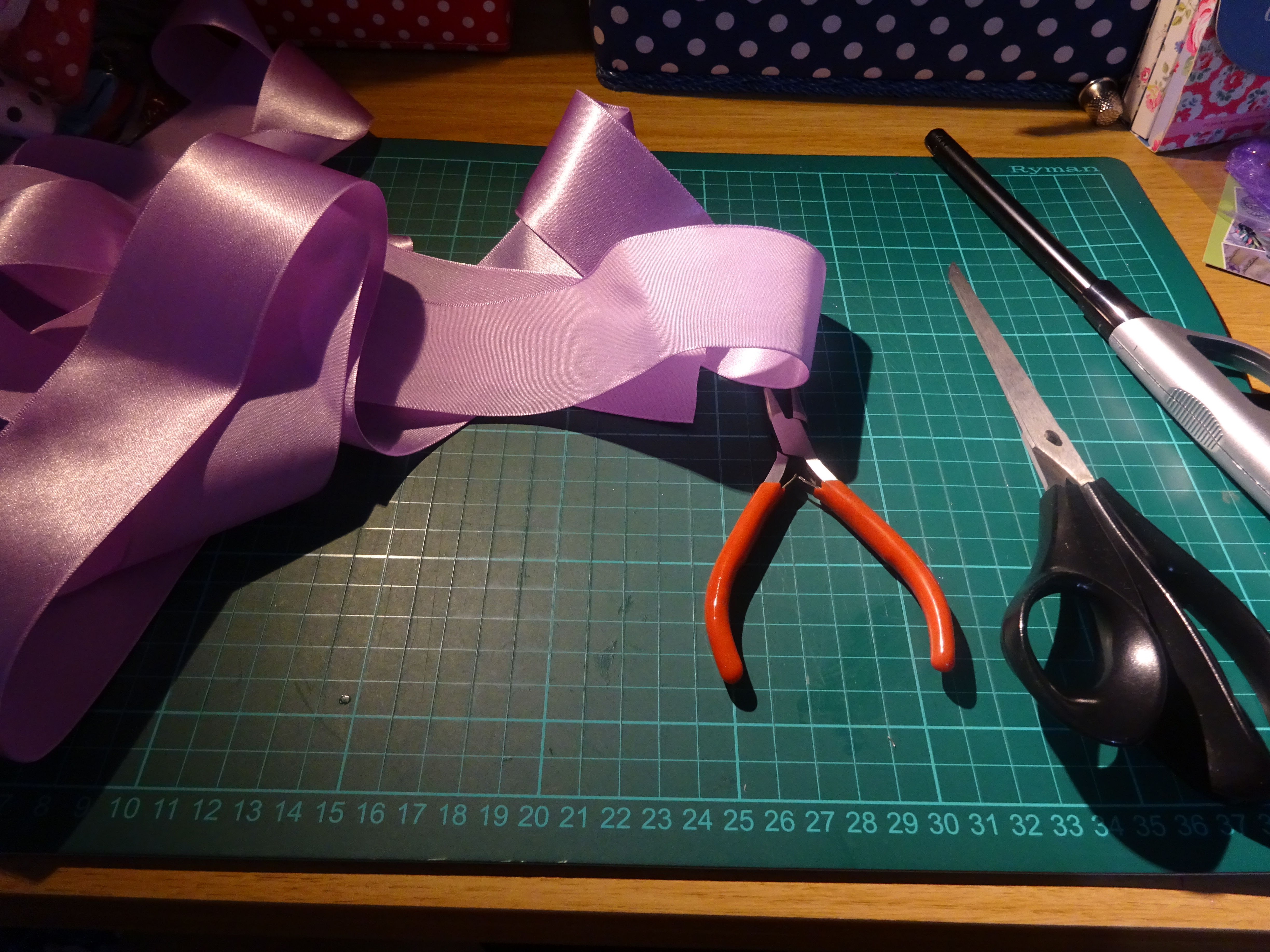 I’d start with a very wide ribbon so you can get used to the steps. My mauve-coloured ribbon here is 5cm wide.
