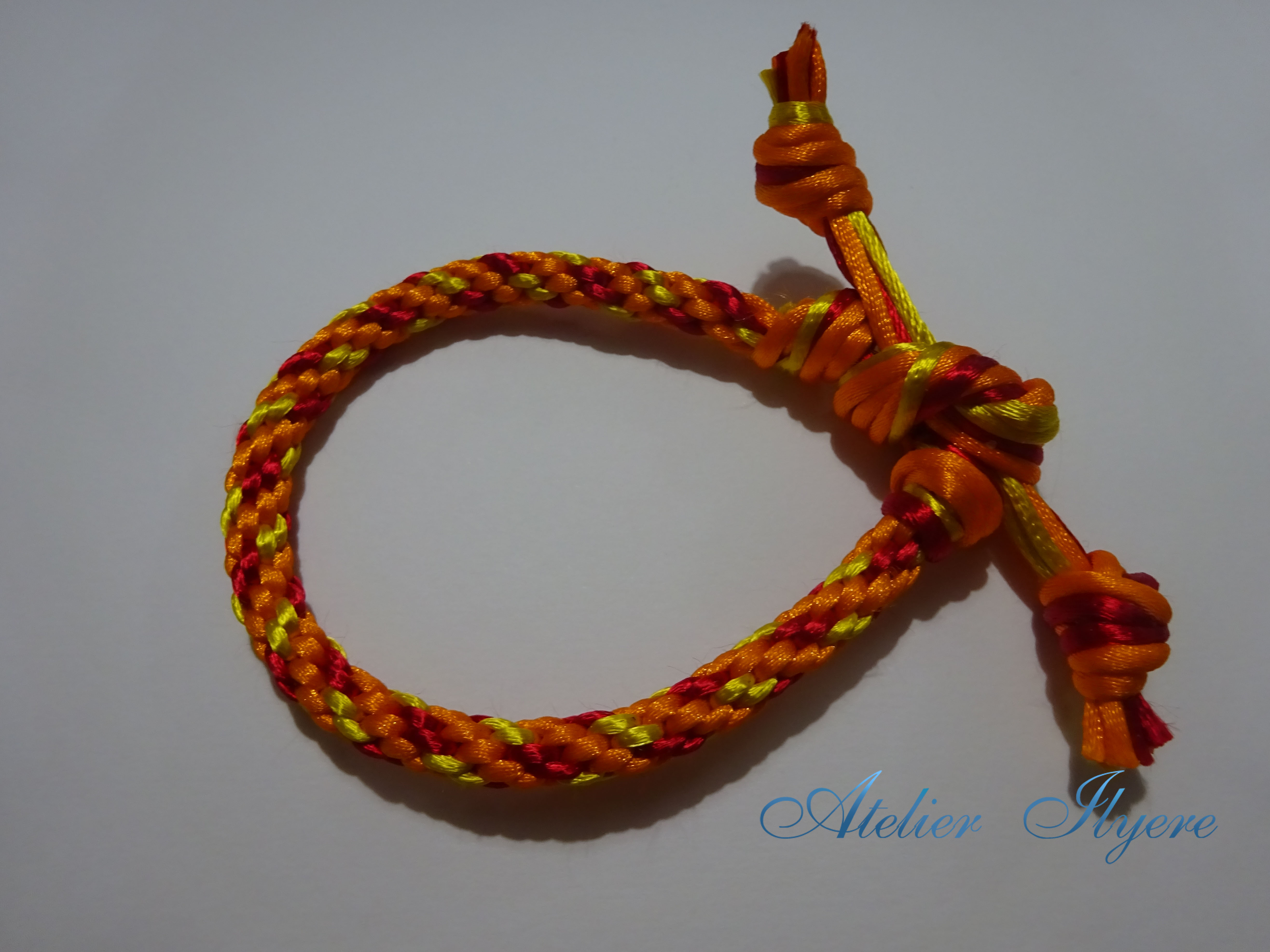 Here is a quick thing I worked on recently. I bought some red, orange and yellow rattail cord a while ago to make a bracelet on request. Like a fiery/sunny pattern!
