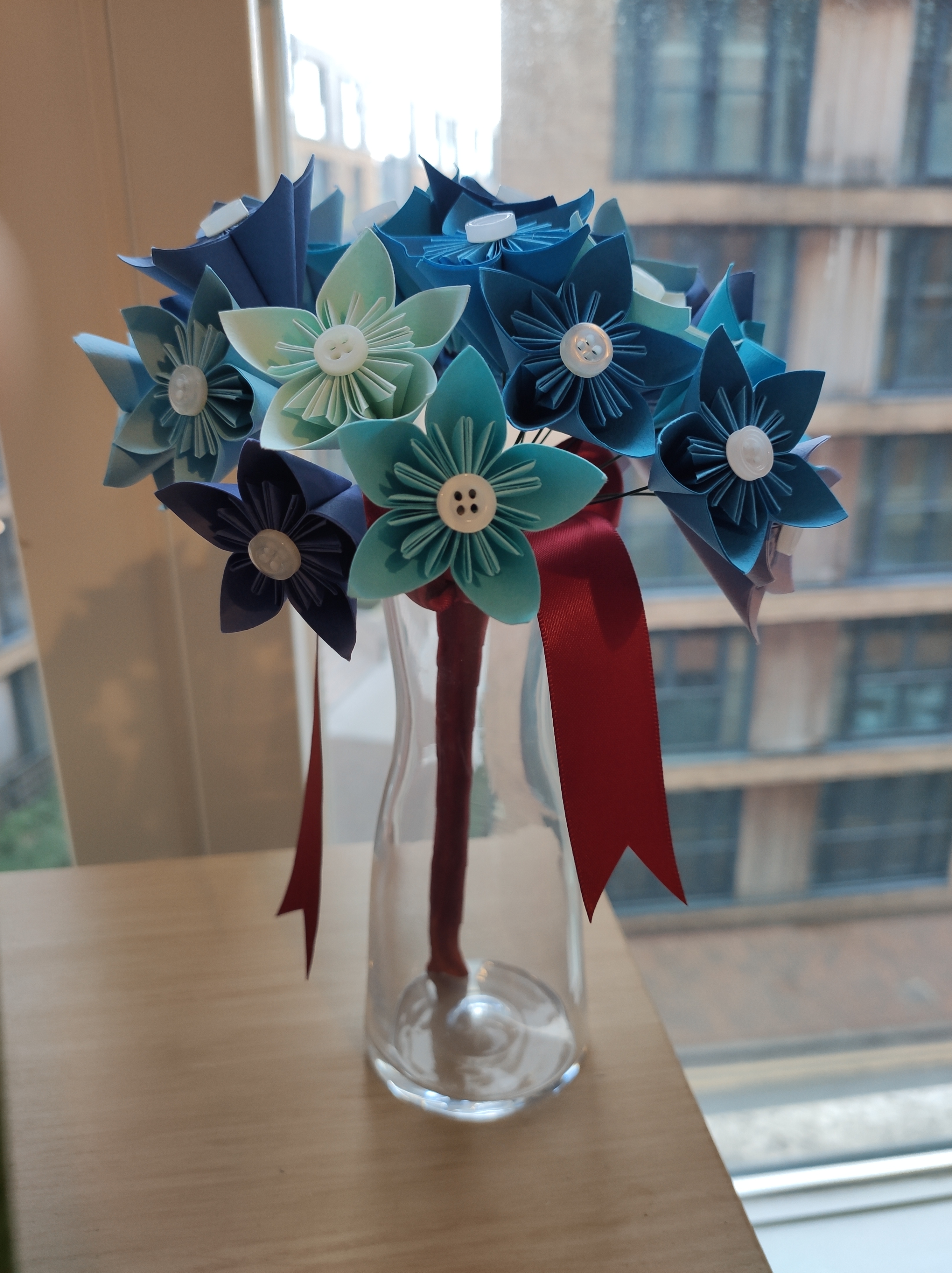 One of my old makes, the blue kusudama flower bouquet, has found new life in my new flat. It sits on top of a cabinet next to the window. And I thought, I could totally make another one!