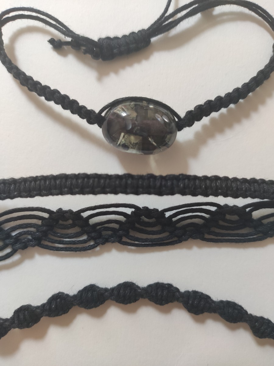 The other day I noticed that I did not own any black bracelets when I looked through my accessories. I already knew how to do a square knot macramé bracelet, so I got some waxed black cord and black rattail, and started making a bracelet.