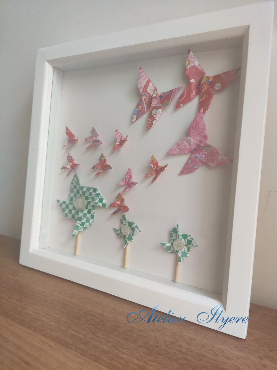 Hobbycraft has this blog post on ways to use a deep box frame and I got inspired to make an origami-themed frame.