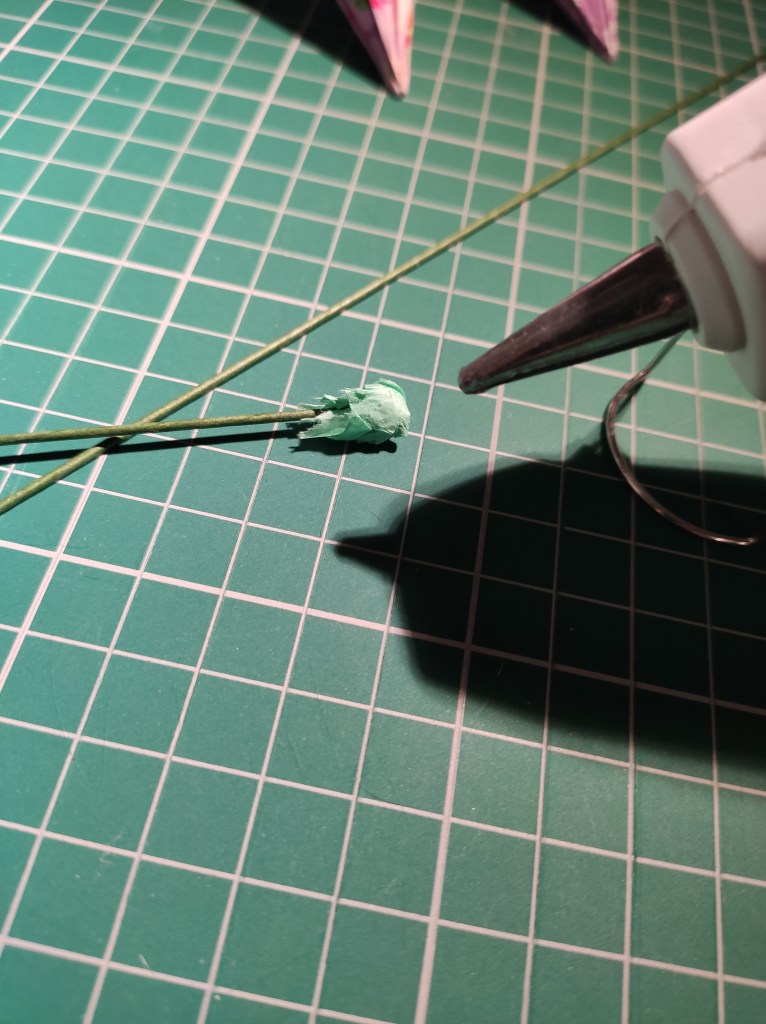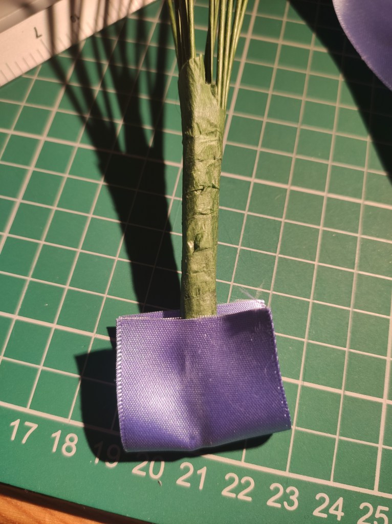 The stems I am using are sugarcraft stems used in baking – they are already wrapped for you and a bit sturdier than normal wires. I could wrap it myself if I wanted to…