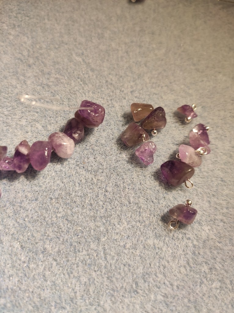 For these amethyst chips I matched them with silver findings, but I find that amethyst can work with gold too.