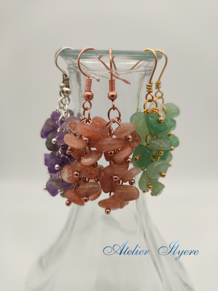 I paired sunstone chips with rose gold findings, and green fluorite chips with gold findings. You can use your own colour combinations, but I liked these the most!