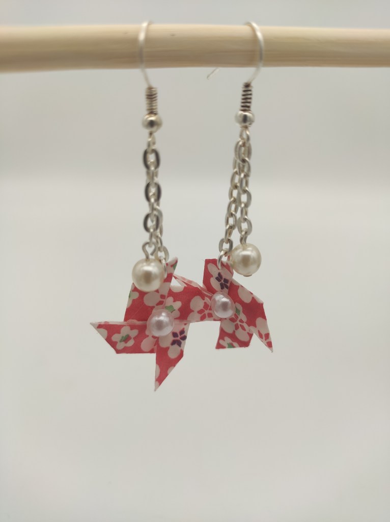 Turns out the idea of origami jewellery – especially earrings – is already quite an established and popular idea if you look it up online, haha… But you can add a personal touch by using unique paper patterns.