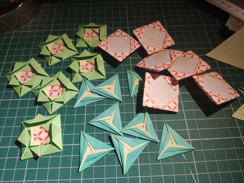 I like to add a dab of PVA glue to secure some units together, but you don’t need to use glue to make a proper kusudama because it should lock together properly. However I like to hang them on walls so the glue is for security. Sometimes if you apply too much PVA then it can ruin the piece, so do be careful.