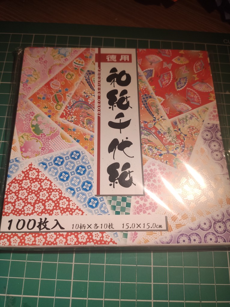 – 30 15cm origami squares in 10 different patterns cut to 7.5cm squares