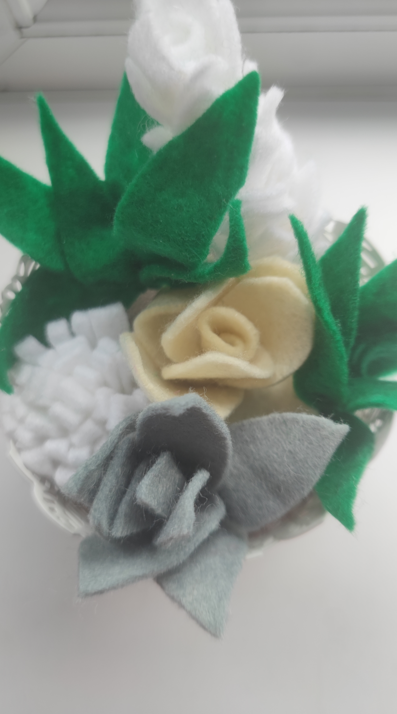 I only did leaves and one type of succulent for the felt frame, but I was a bit more adventurous here. I made three types of shapes and colours. The white petal succulent is probably my favourite but it does take the most effort!