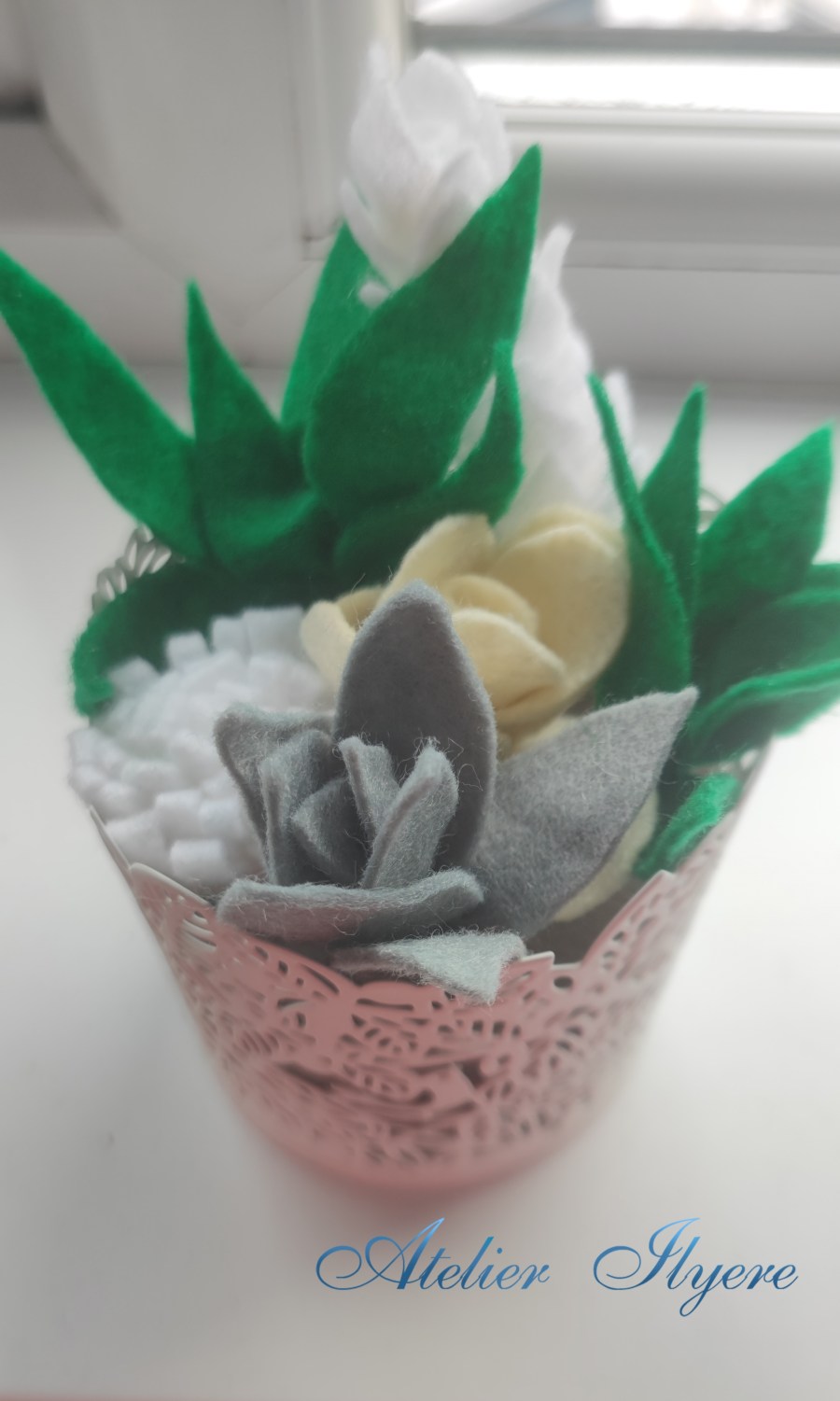 Instead, thinking back to my Felt flower box frame that I created last year and the fantastic Hobbycraft felt succulent tutorial, I decided to make some succulents.