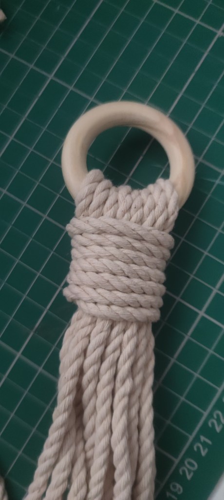 The first new thing I learnt was a gathering knot to connect the cords to the ring. I’m sure this is a basic skill but I haven’t previously used this.