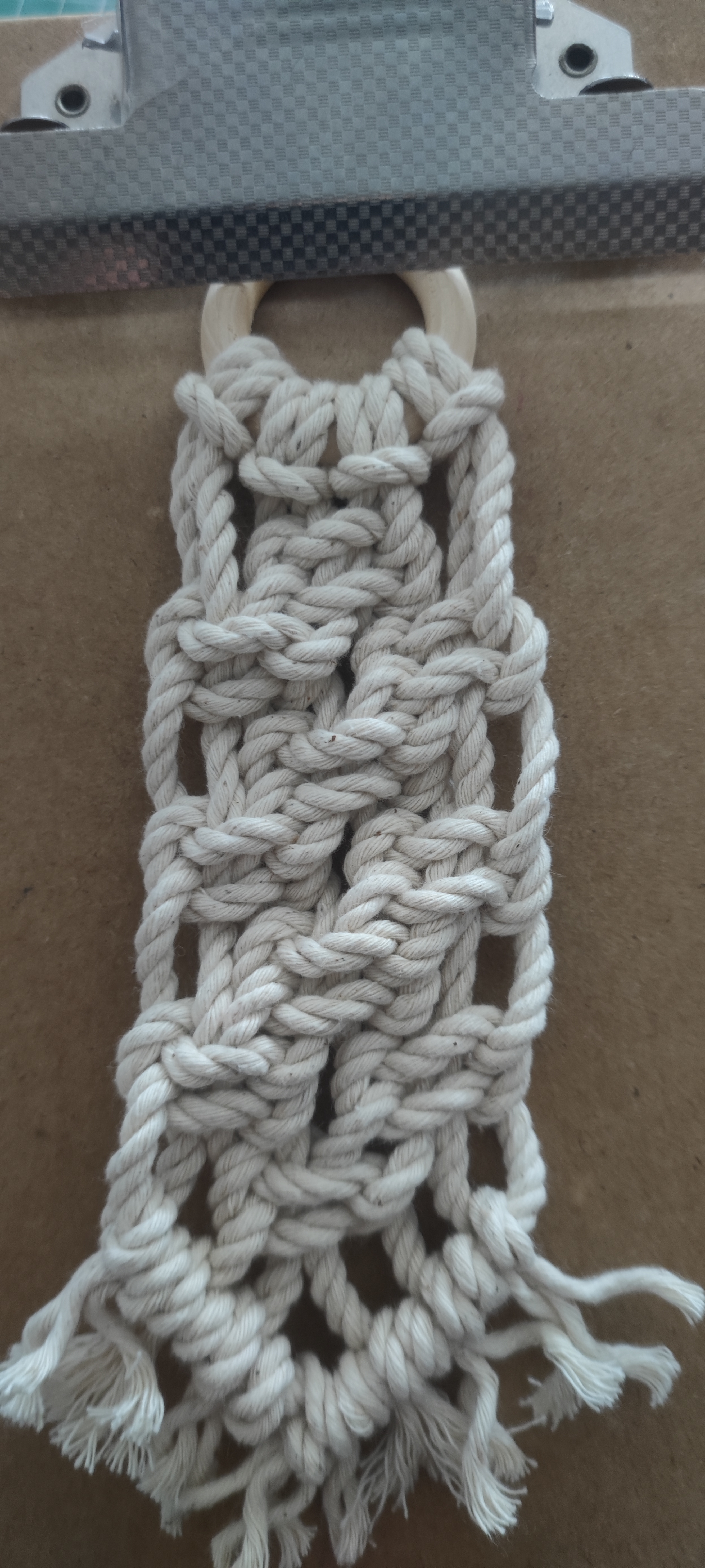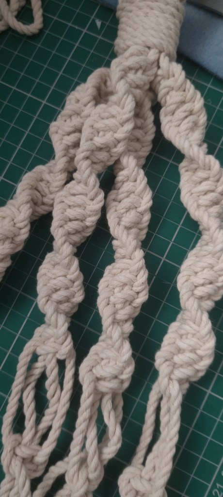 After that it’s a series of spiral knots hanging from the top, then square knots to form breaks and to connect the cords together.