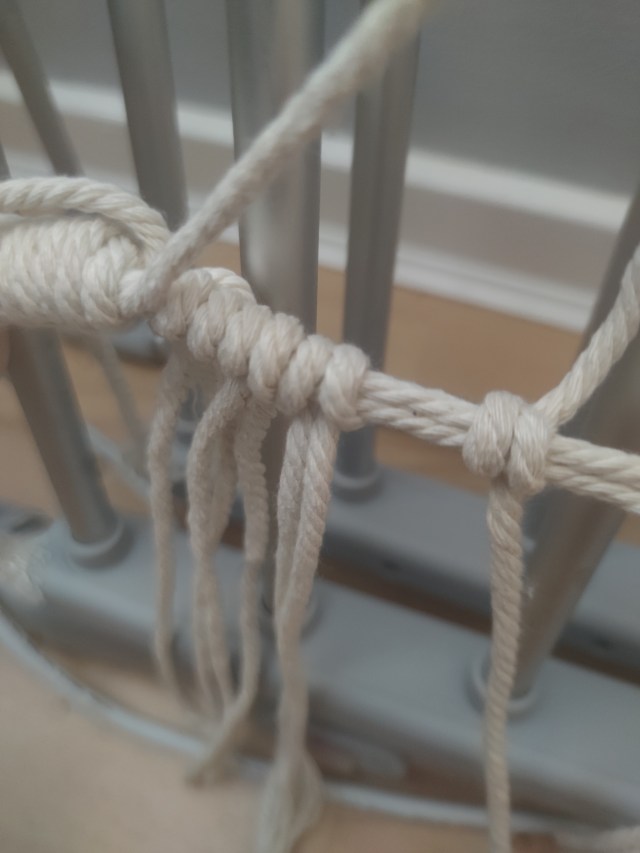 I honestly thought it would take me a long time to do this, but I was just having a lot of fun with this and time flew by! I actually think this took me less than a day, and this was from a first attempt. I had to undo some knots sometimes because they were not taut enough, but otherwise it is really straight-forward.