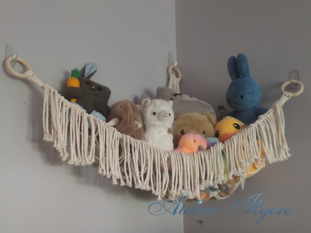 Eager to try out more macramé projects, I found out about macrame hammocks and came across this fantastic tutorial by Summer Macrame for a small macramé hammock. Anyone who knows me knows that I own a lot of plushies! This is a great way to tidy up and add a personal touch to my room.