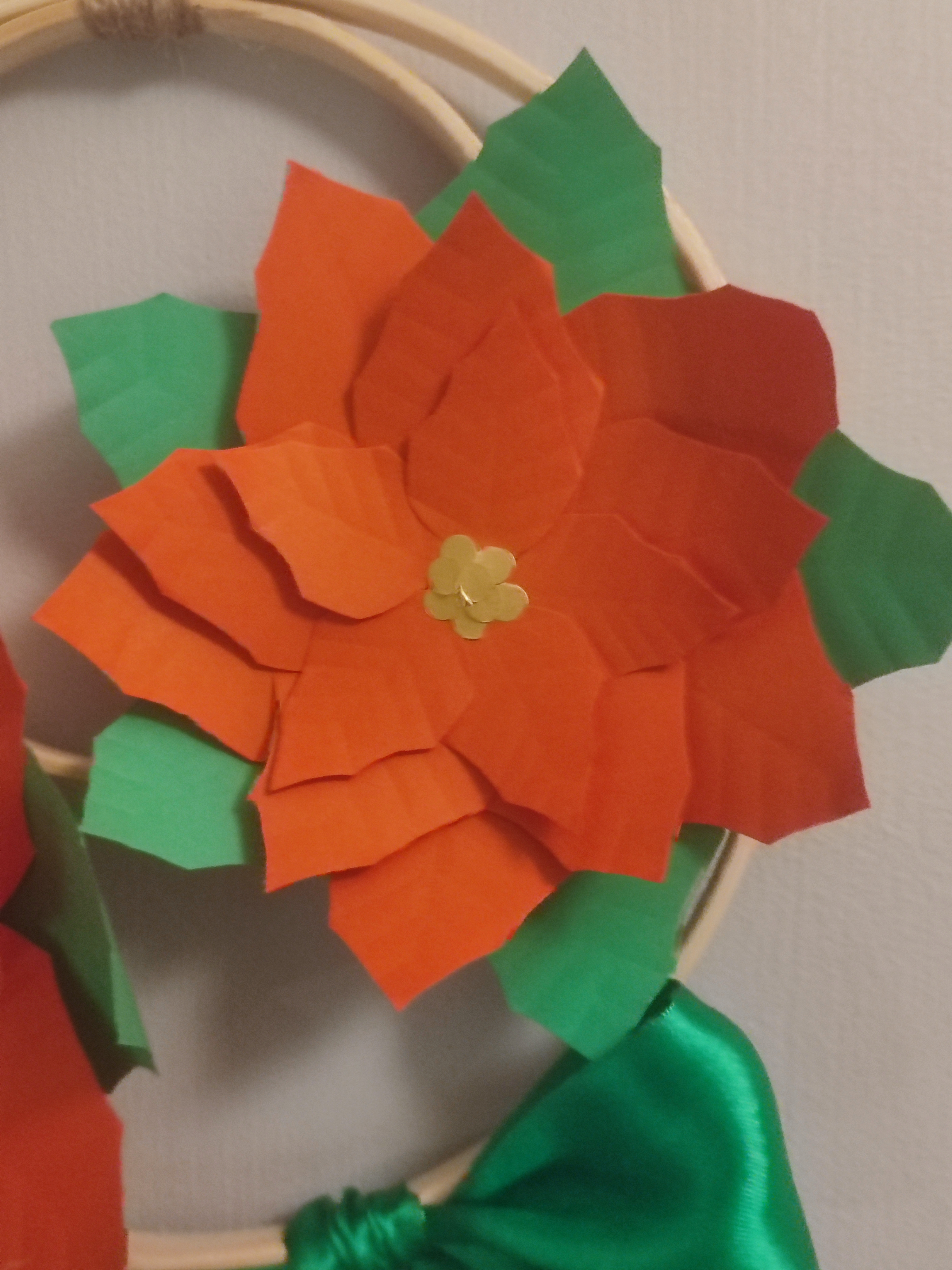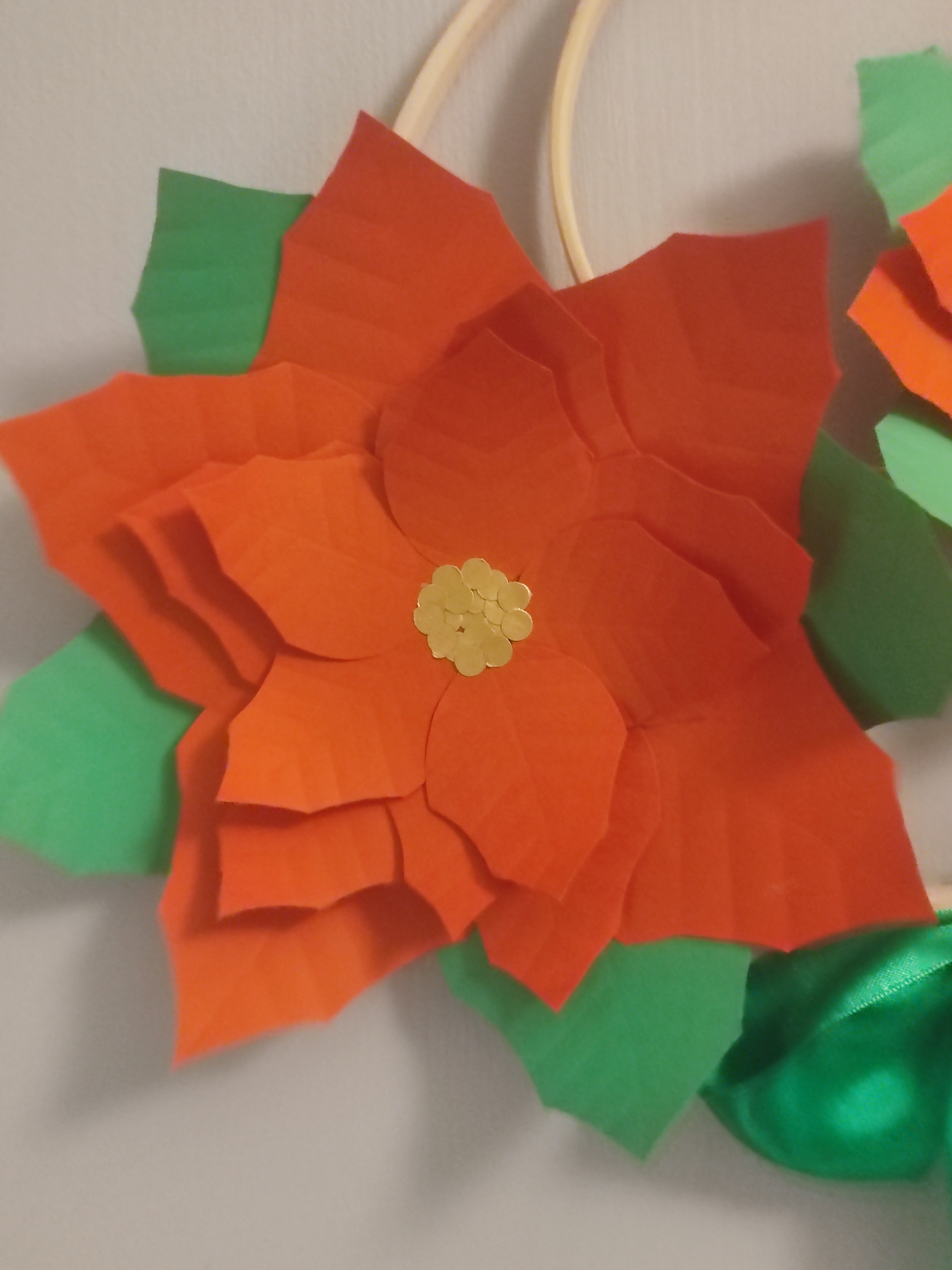 The tutorial that I based most of my ideas on is the Giant Poinsettias by OGCrafts – there is a video link and some images of how to display them. Although they do look great as wall decor, I wanted to make a wall hanging/wreath of sorts so that I can put it away more easily.