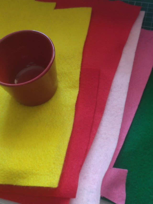 – felt sheets (I used light pink/dark pink/light purple/dark magenta/red/yellow)
