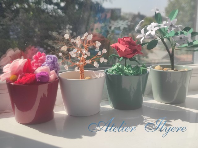 The aim was to apply different facets of crafting techniques to create the same thing (in this case, a plant) but in different ways (the materials used). Also, I have a lot of stuff that needs using! So I did not have to buy many new materials for this.