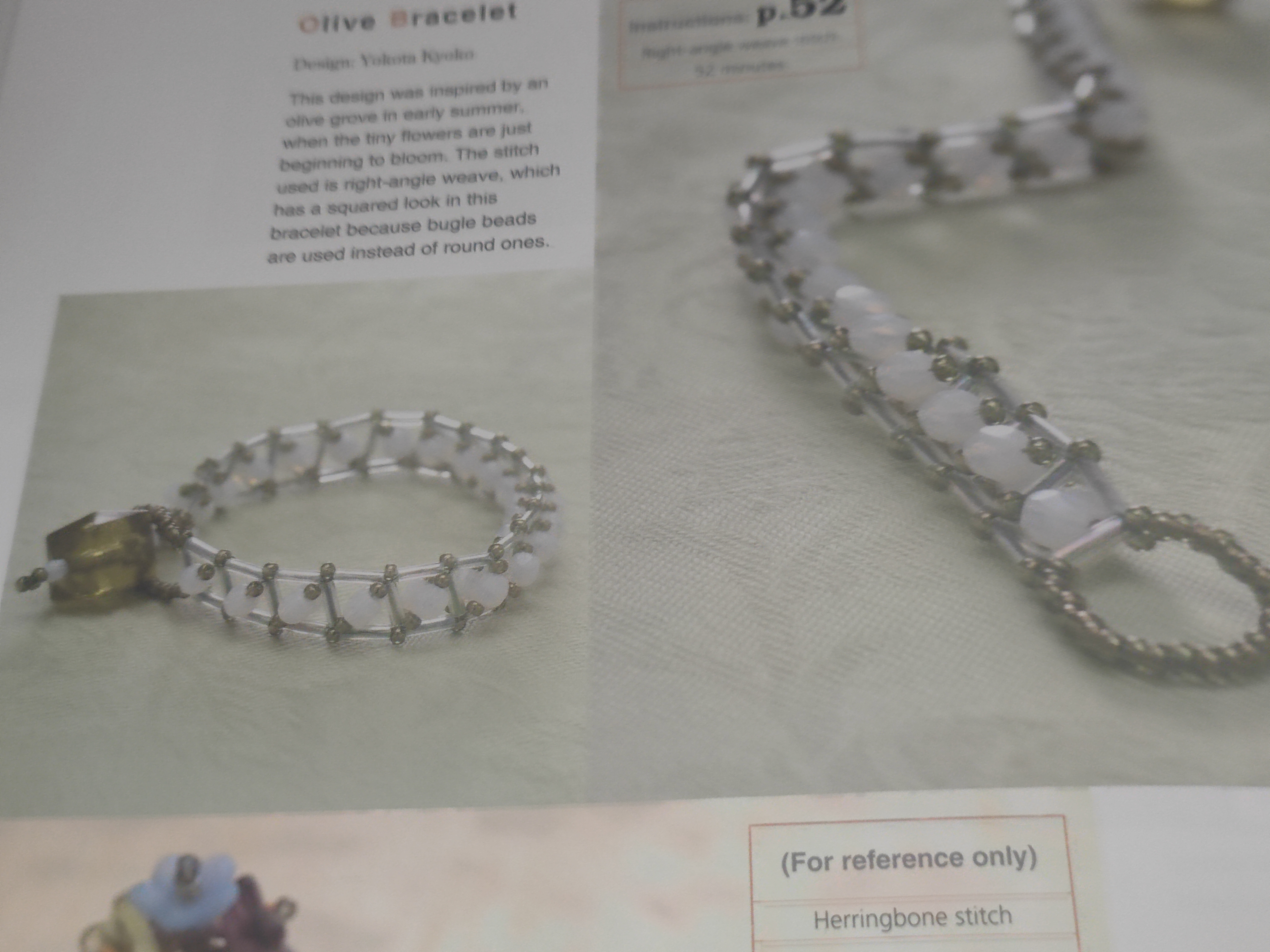 In the book Beadweaving Brilliance, there is this project idea for the ‘Olive Bracelet’, which uses the right-angle weave stitch. I suppose you don’t really need the book as you can find out how to do these stitches online, but I have had a lot of mileage out of learning from it already! (Not sponsored.)