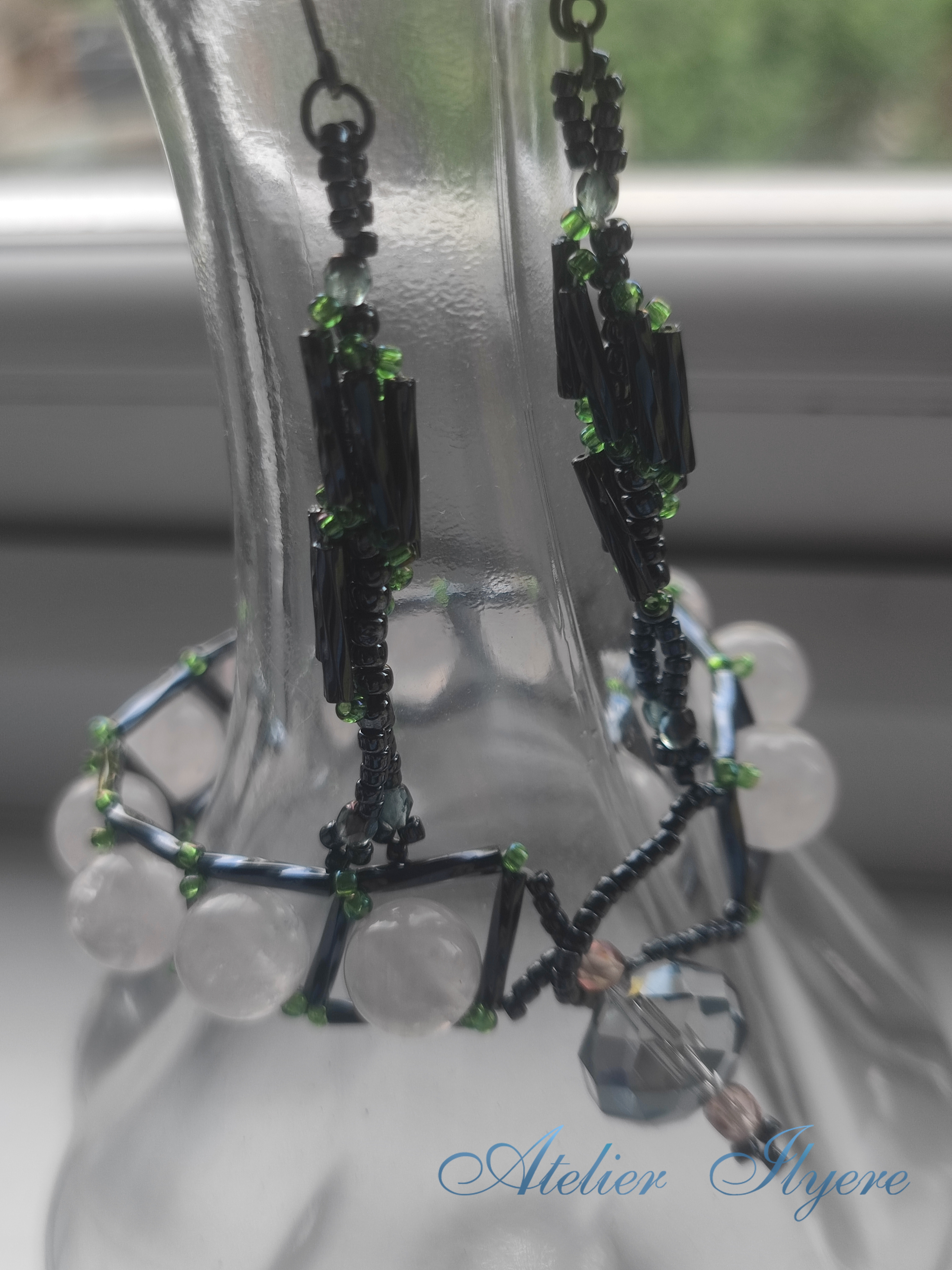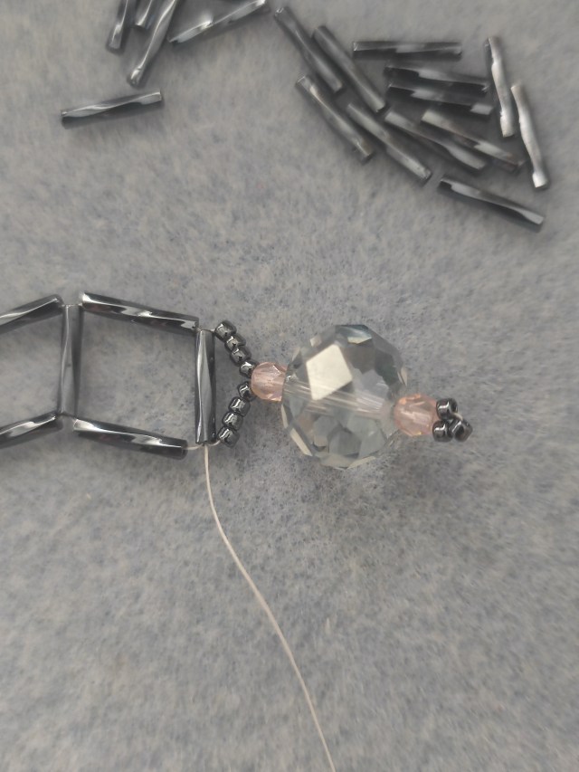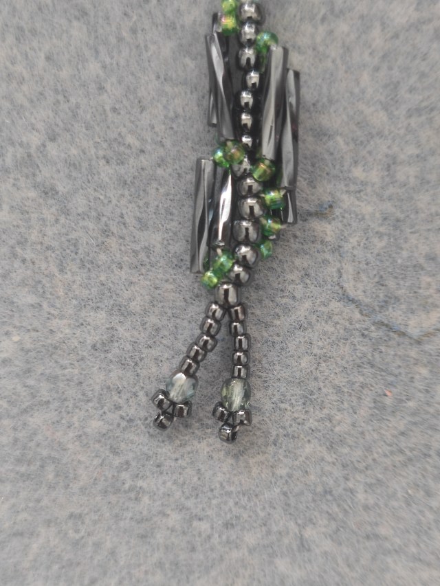 I continued the stitch enough times to make it to the other side as I did not want to make it too long, then I added some little bead tails at the end. I also had some light black fire-polished beads to go with it!