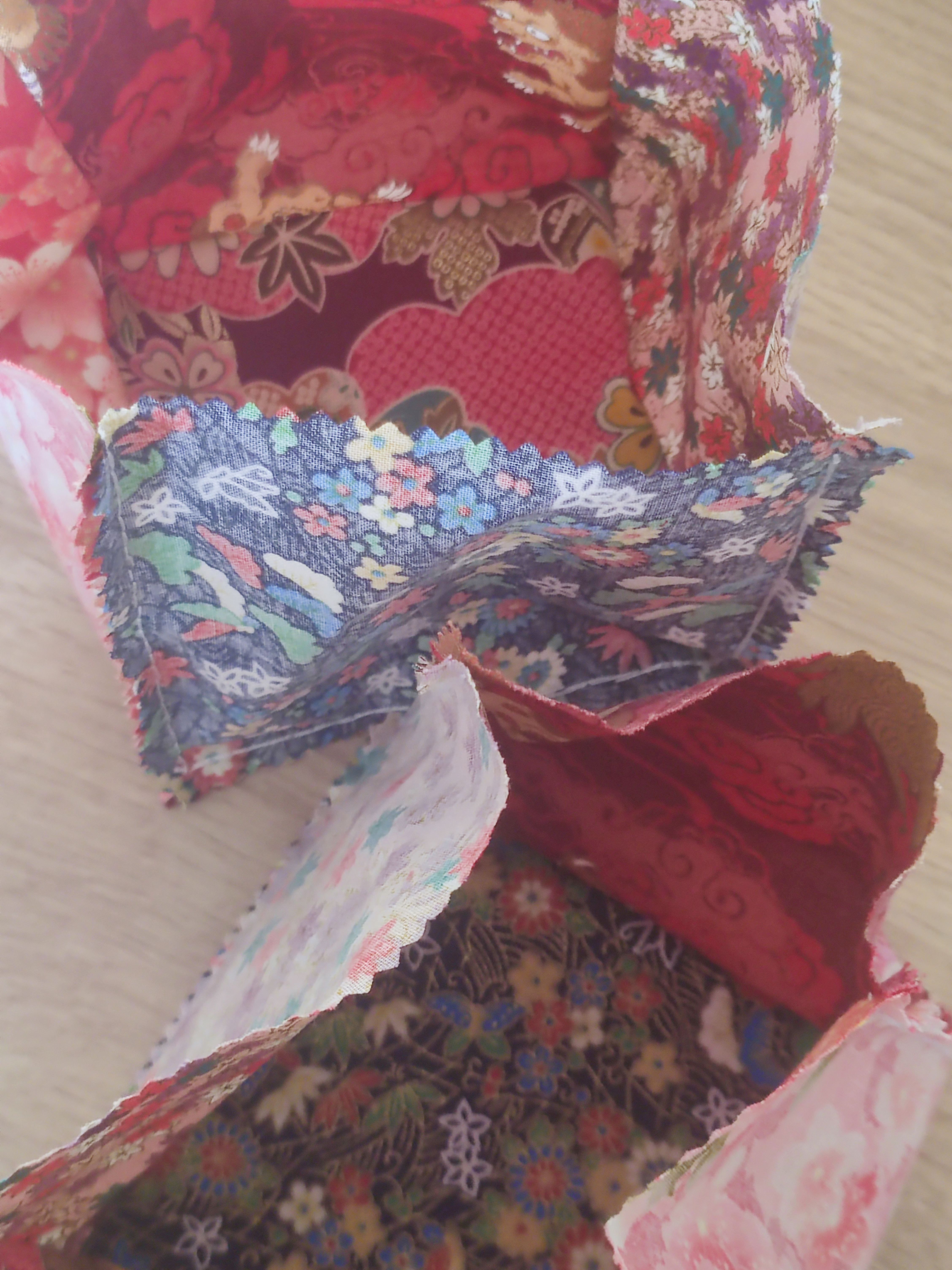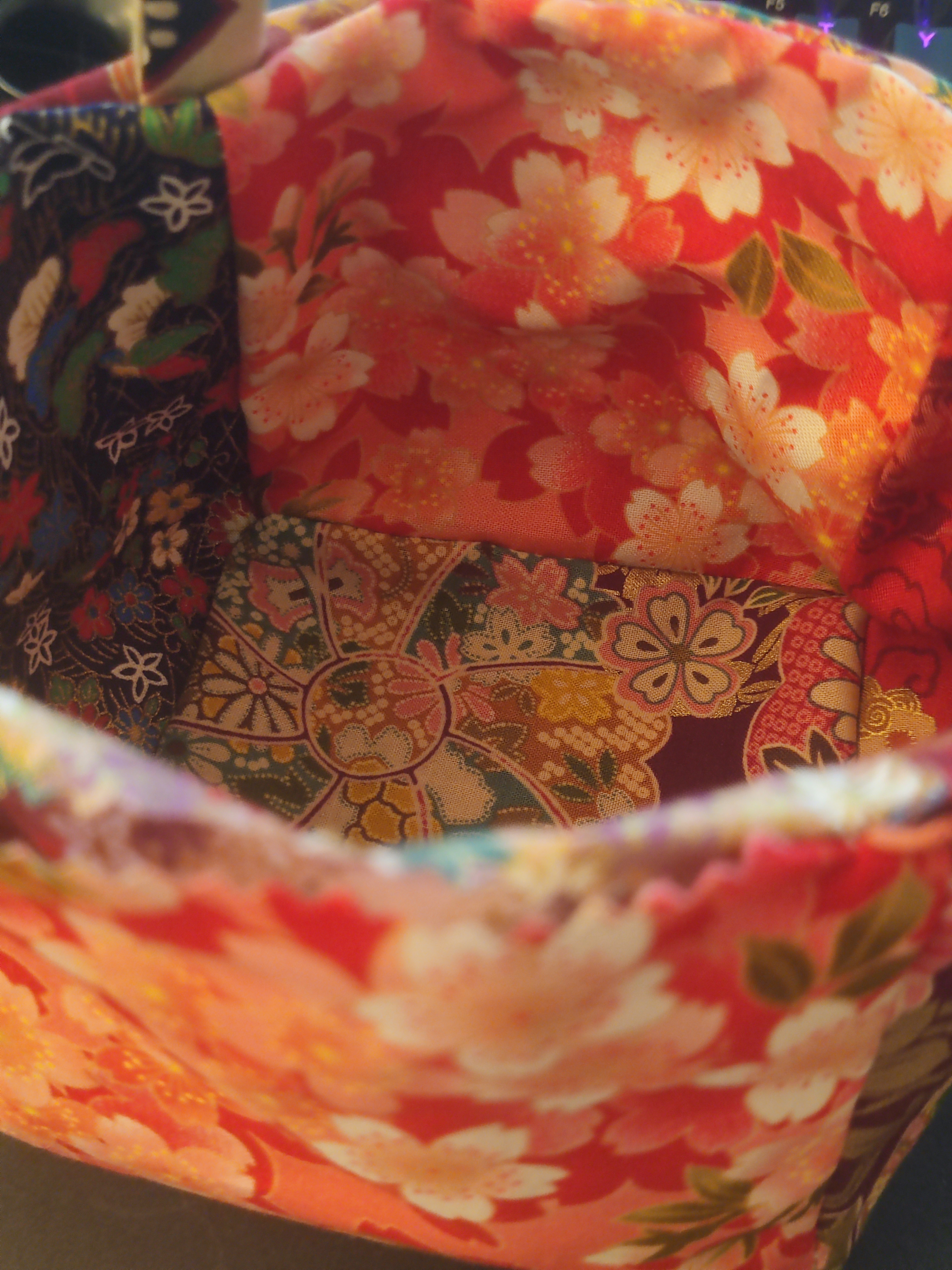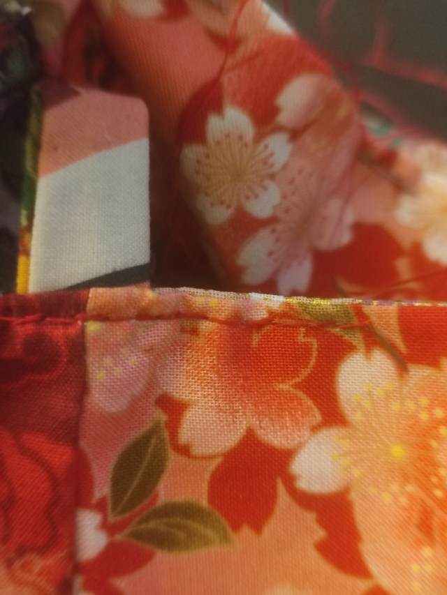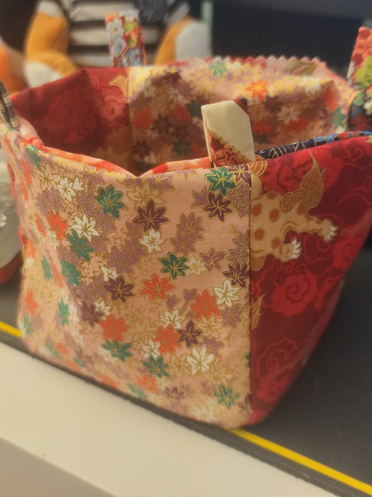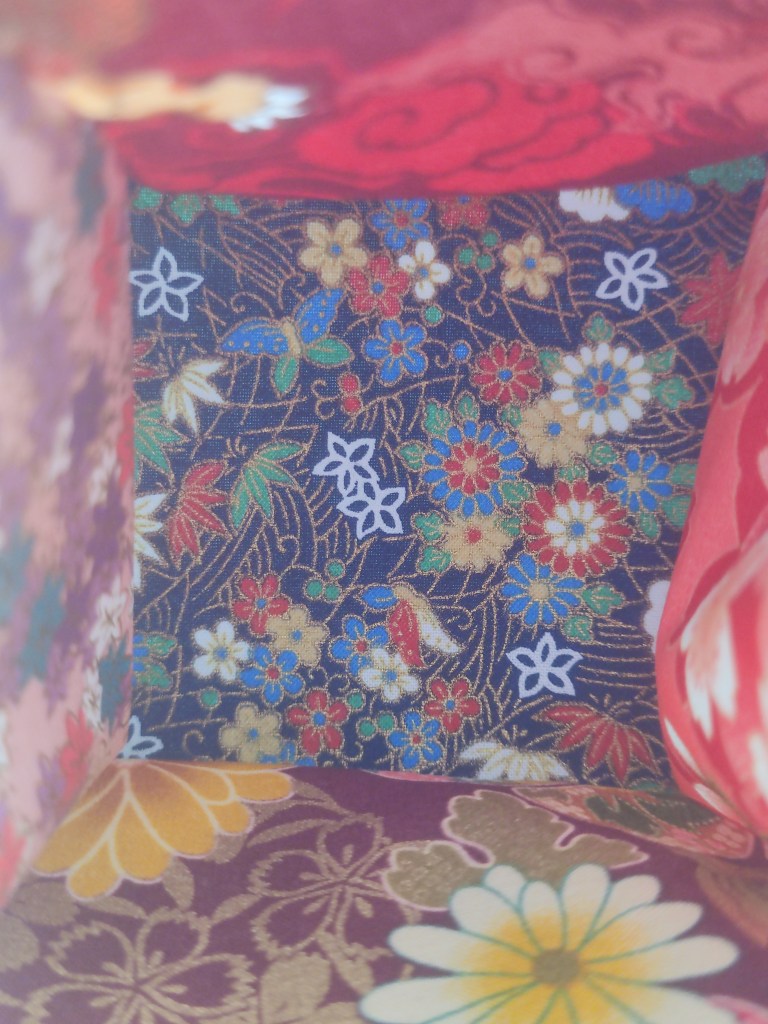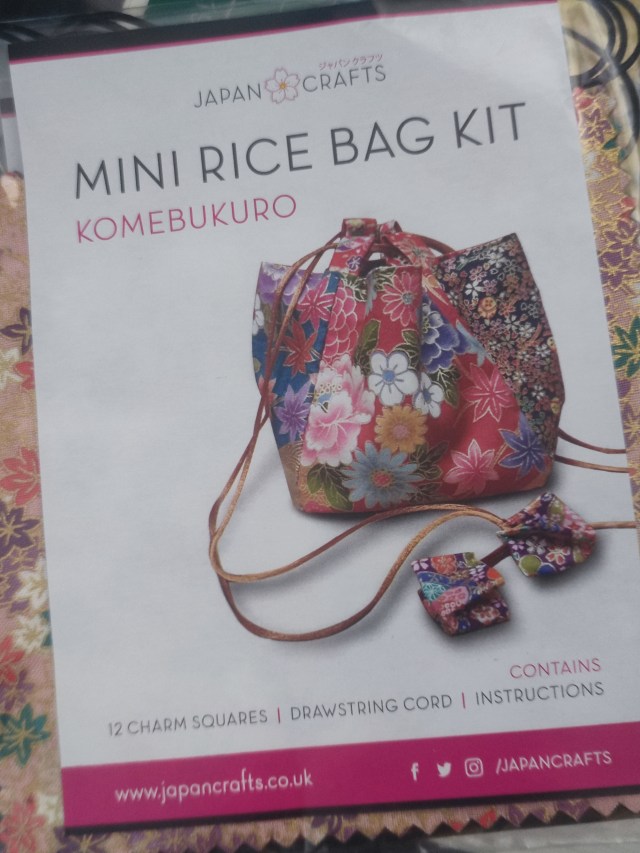 Although it didn’t fully finish in time, I was able to squeeze in to my room and grab a small box of things to work on. I bought this komebukuro craft kit a while ago; a komebukuro is a small traditional Japanese bag for storing things like temple offerings or rice. I bought it from a small shop called Japan Crafts in the city centre at a Japanese market for the day. The lovely patterns really drew my eye and I wanted to try a new sewing project.