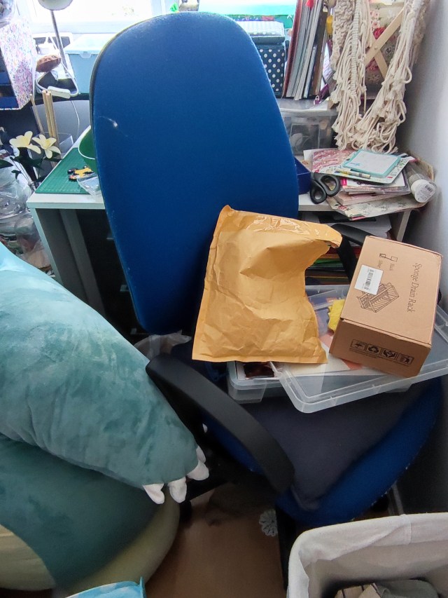 Bonus picture – my craft room! I had the laundry baskets, the pots and pans, the large plushies, the cupboard food – all of it was here! Even my chair was occupied with small bits and stuff, so I couldn’t sit at my crafting desk to work on anything. But I’ve cleared it up as of the last week, so hopefully I will be back to regular updates!