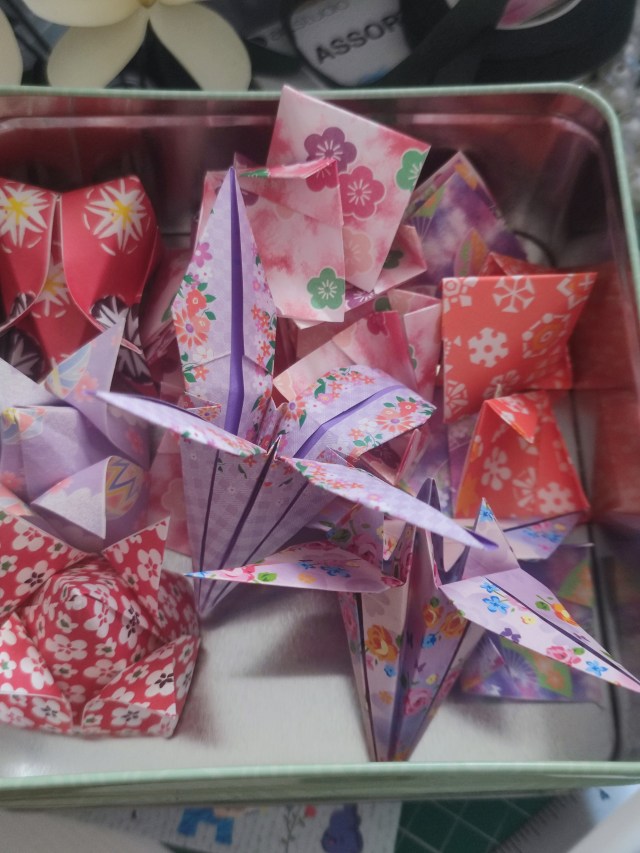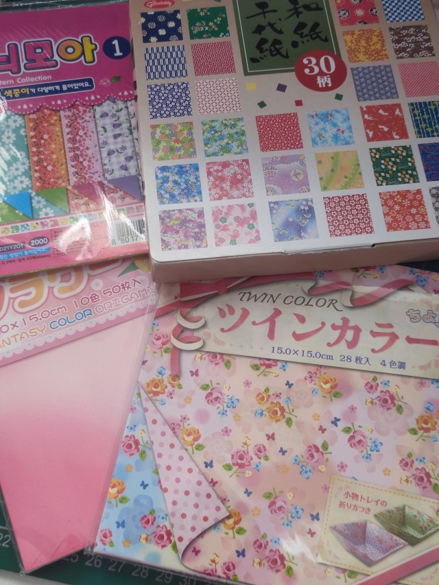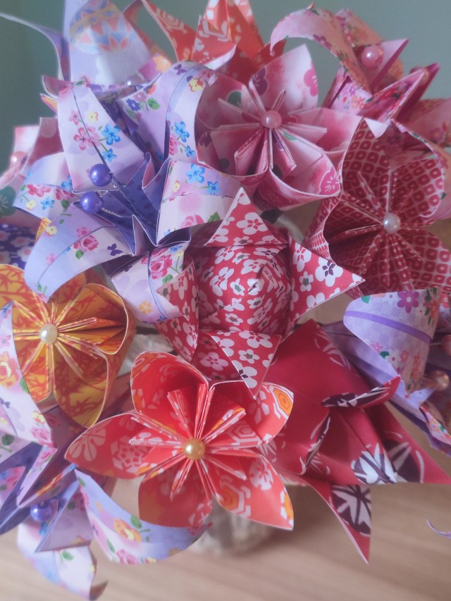 With a couple of flowers in mind, I brought out my best patterned and double-sided papers to see what was available. I’ve had these packs for a while now and I’ve used some before too, so I wasn’t sure how many of each colour I had left. I actually think it might be time for me to restock on origami paper, which is an exciting activity in its own right!