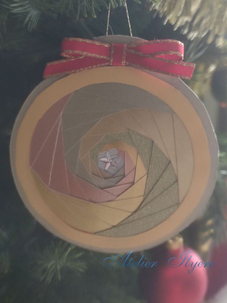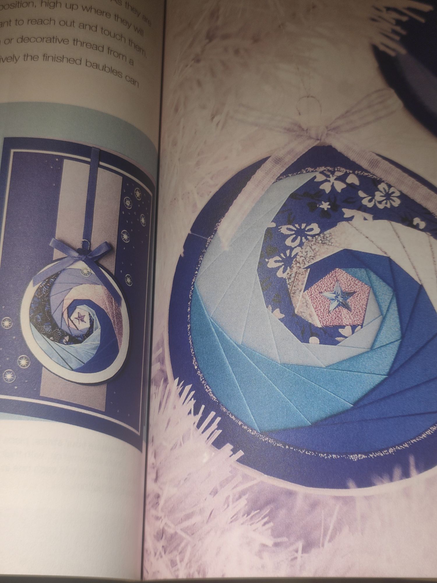 When I started crafting, one of the first books I bought was the book Paper Fold It by Steve and Megumi Biddle. It contains many paper-based projects to work through – some use origami techniques but some use other types of folding to suit all occasions. One project that suited the festive season was the ‘iris-folded bauble’, as seen here: