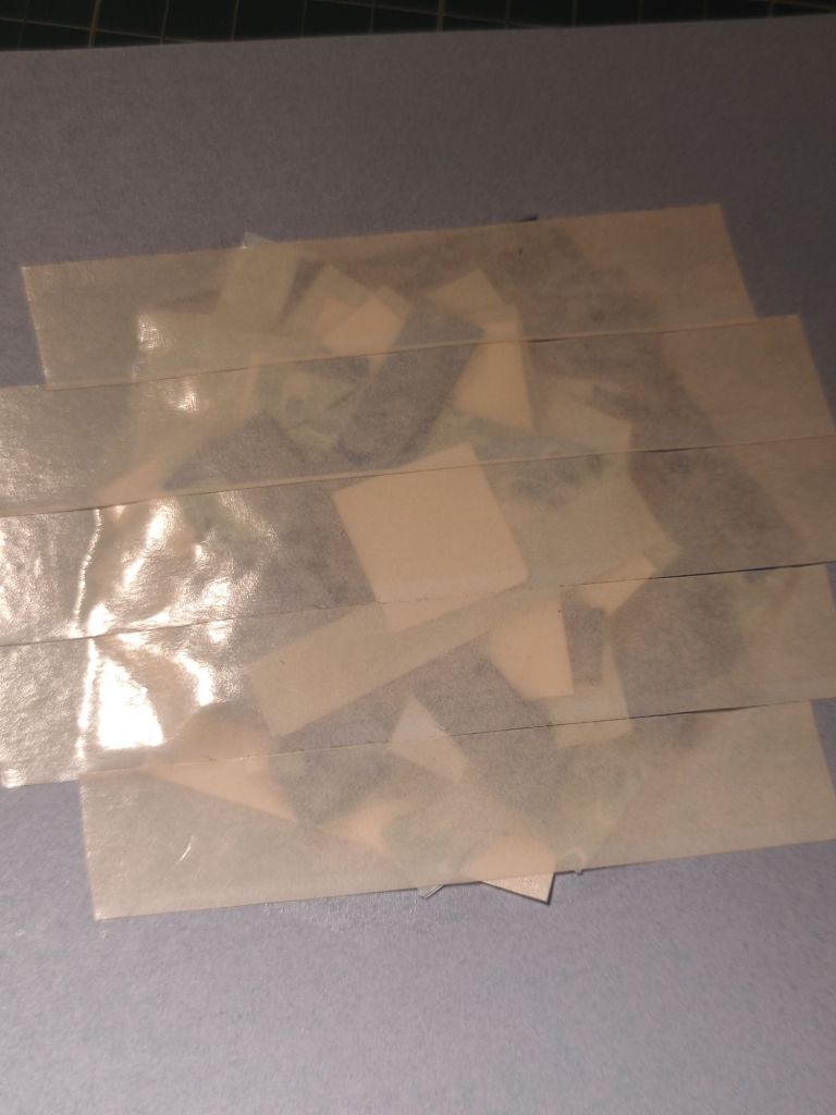 Now the project does specify paper, but I tried using card instead; the reason for this is that I had a stack of shiny and glittery card that I thought would be perfect for a paper bauble. I cut out the 1cm strips as required (no folding this time since card is not easily foldable) and made some stacks.
