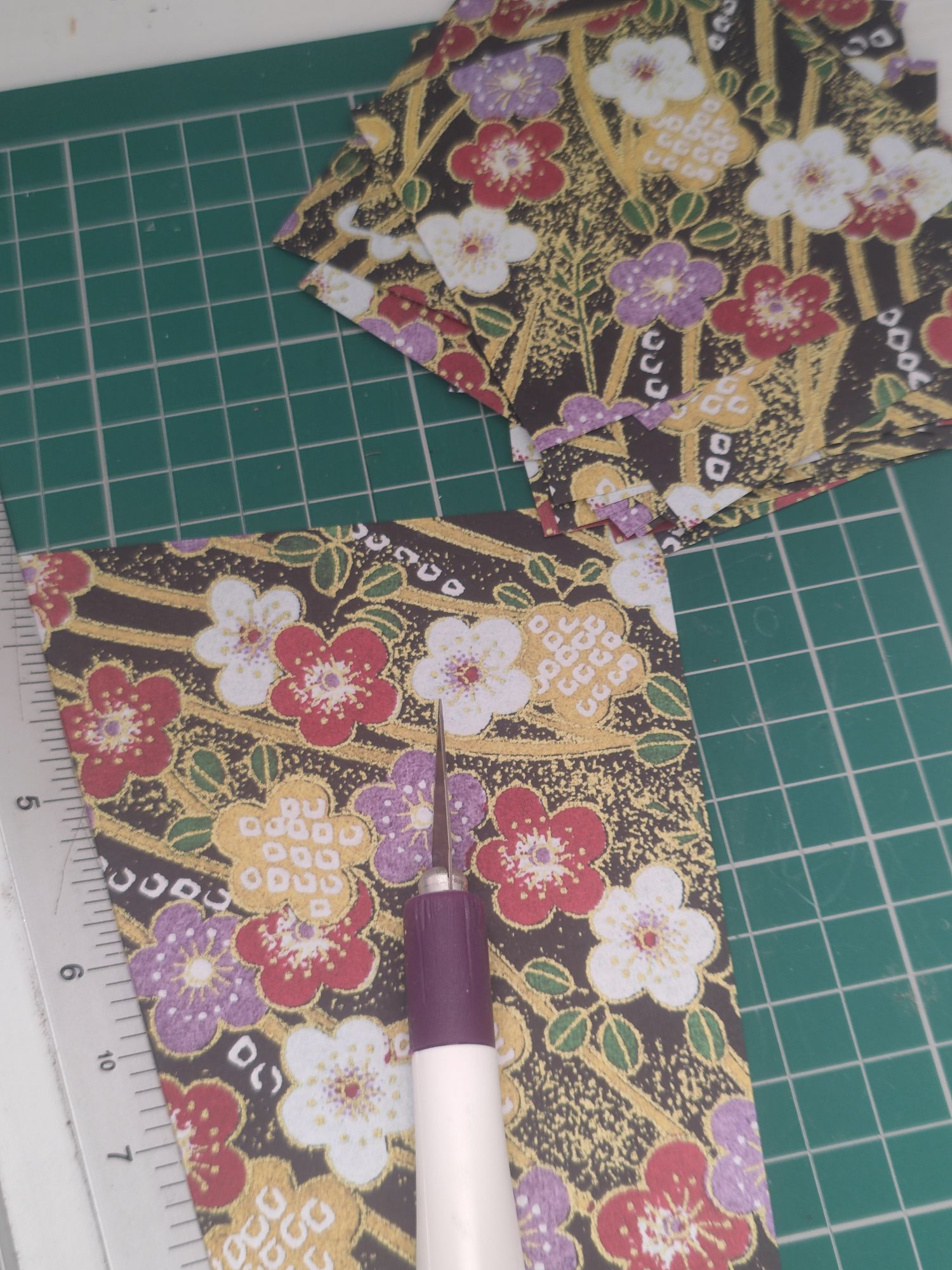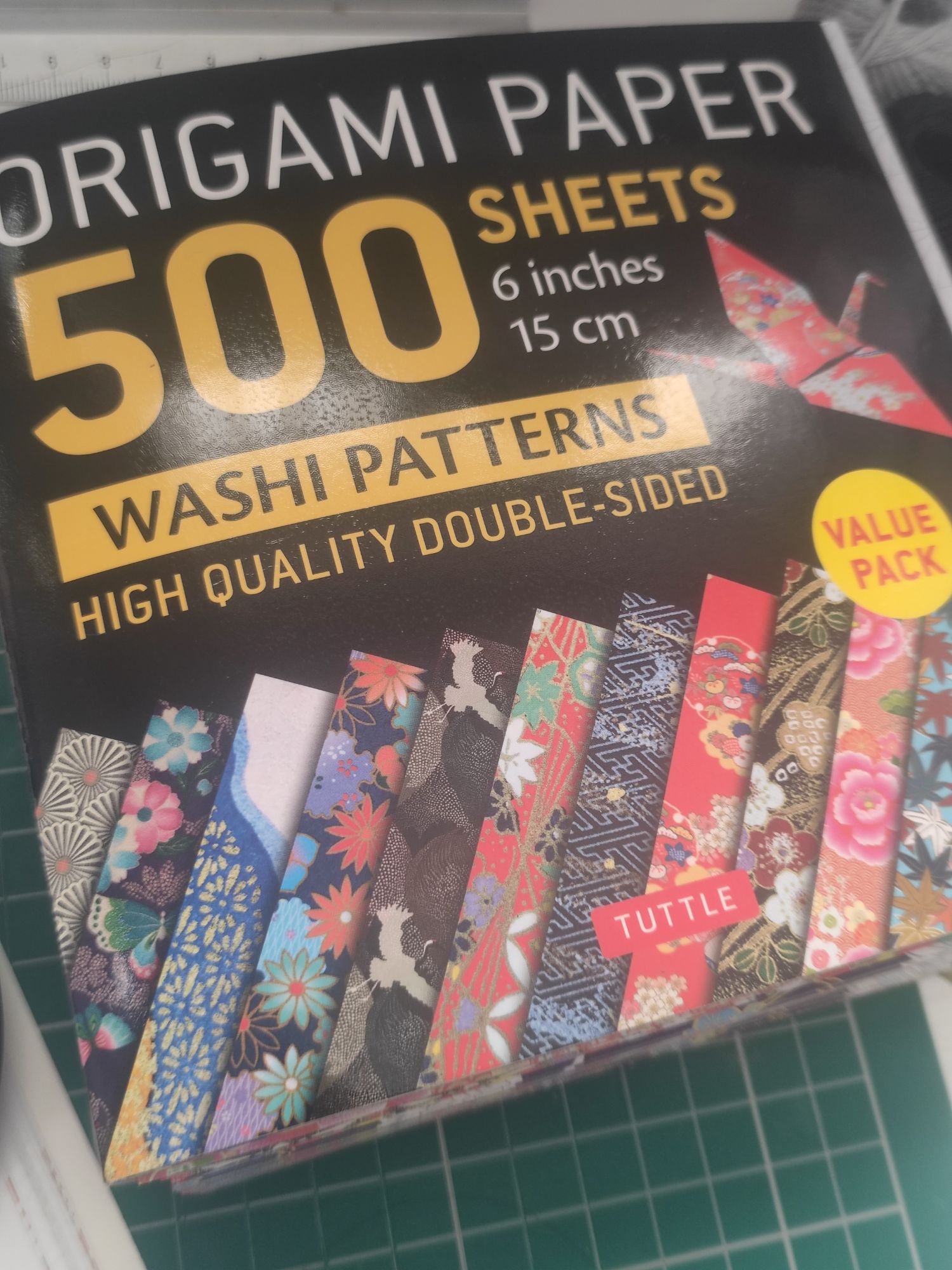 – 32 squares of 7.5cm double-sided patterned origami paper