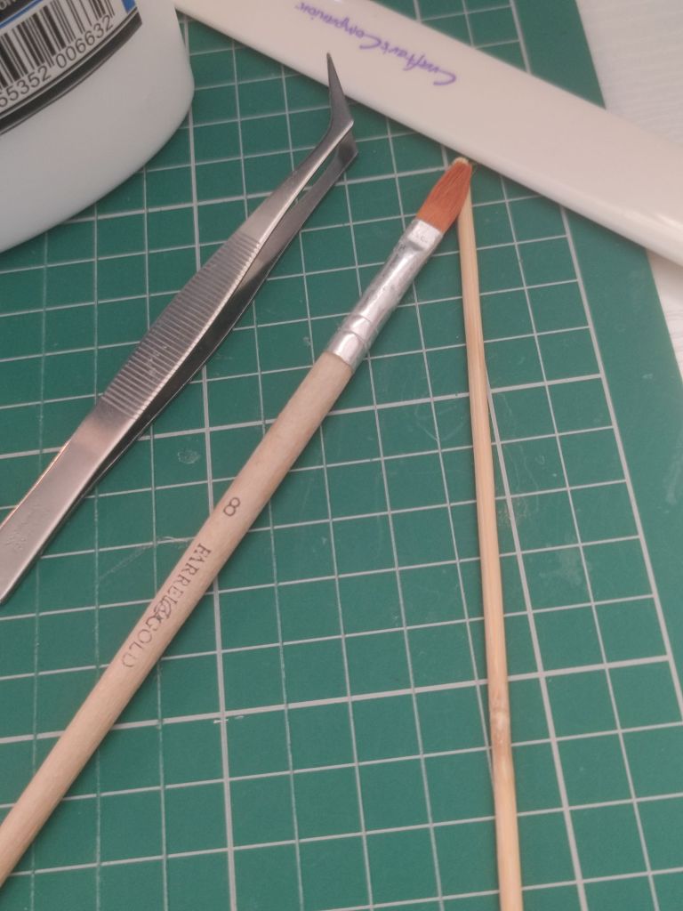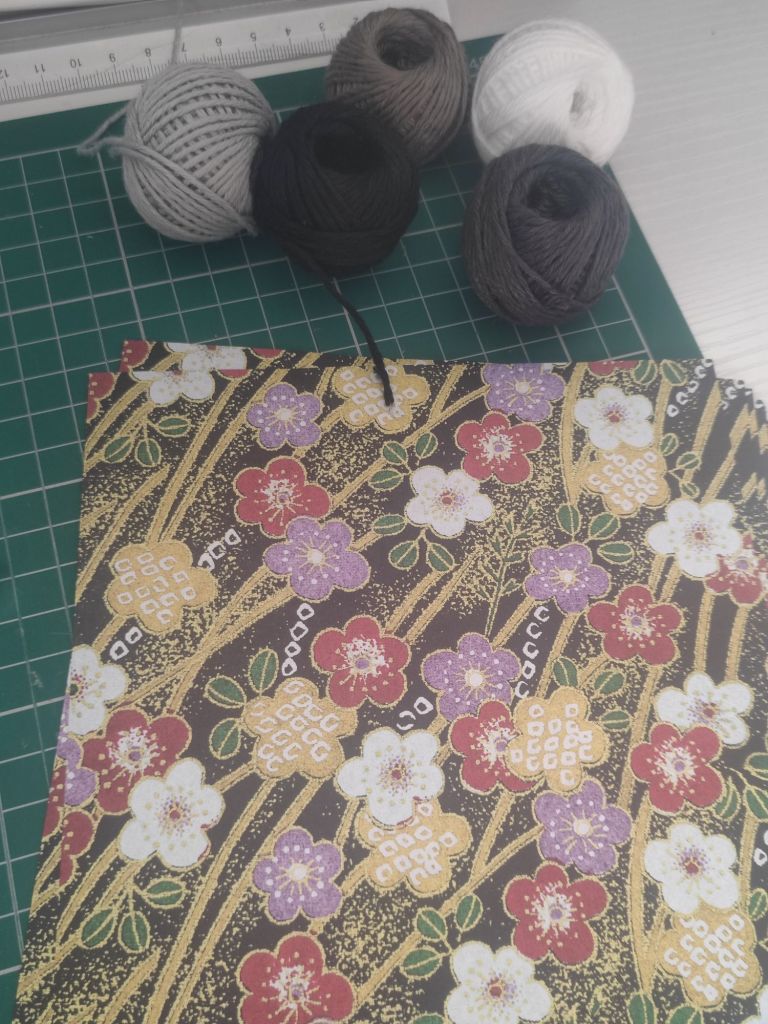 I like to use coloured twine thread to make a matching tassel decoration, so I got a mix of white, grey, and black threads. There is also a bone folder for creasing the paper, a small wooden dowel for curling the paper, a pair of angled tweezers to help pull the paper layers apart, and a paint brush and PVA glue to glue the units together. These are all optional tools, but I tend to have them on hand when making a modular form.