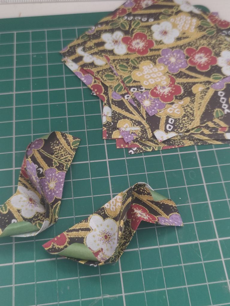 !With my 15cm paper, I cut them into 7.5cm squares with a craft knife and cutting mat. I find that when I cut the paper myself by folding the paper into quarters, the resulting square is never usually ‘square’. The folded units are never perfect even though you following the diagrams exactly! So the assembly can be tricky at the end, but otherwise the model comes together well.