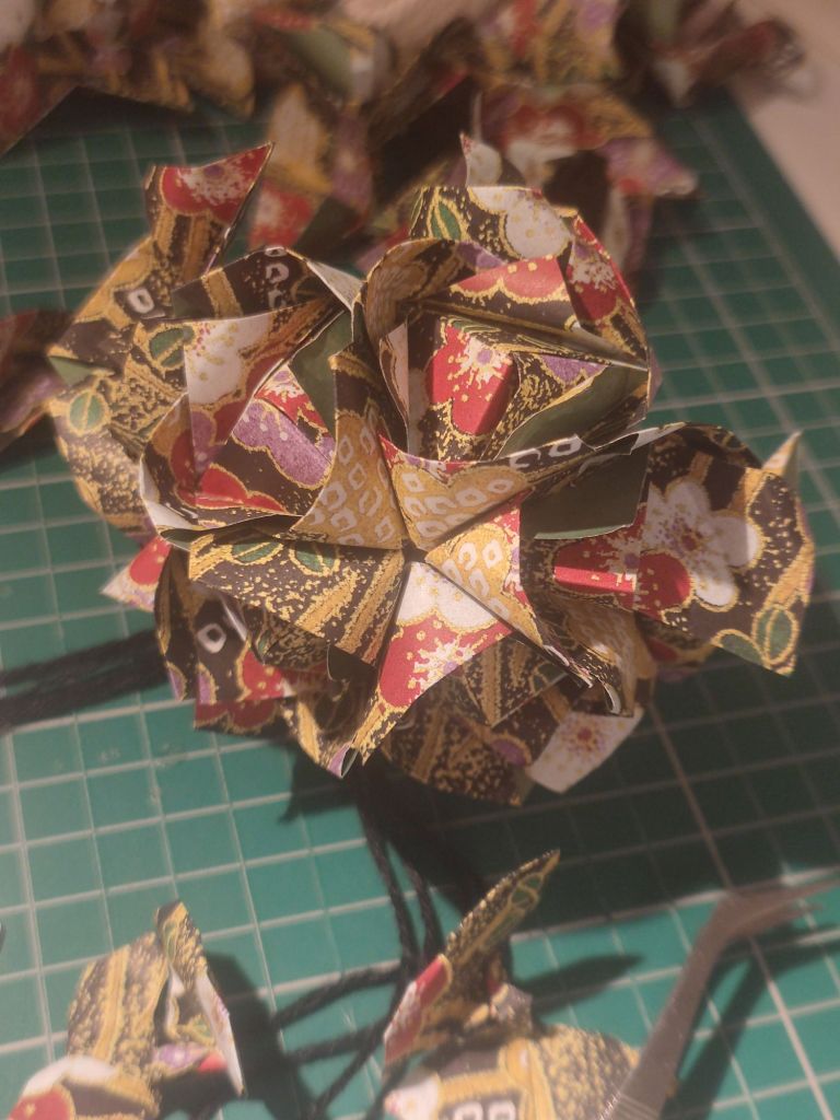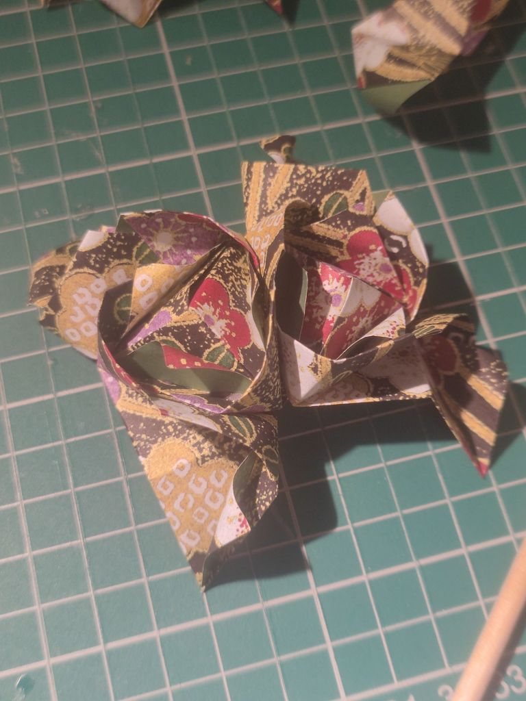 There’s a couple of things that I wanted to do this month, but I think they will take a long time to get going, so I decided to pick a modular form to create as a smaller project. I have mentioned the book Zen Origami by Maria Sinayskaya before, which is an excellent book to learn about Sonobe modular origami, and I chose the Imperial Rose Sonobe for this project. I think it also can be called the Royal Rose Kusudama because I remember making this model a long time ago, before I started blogging!