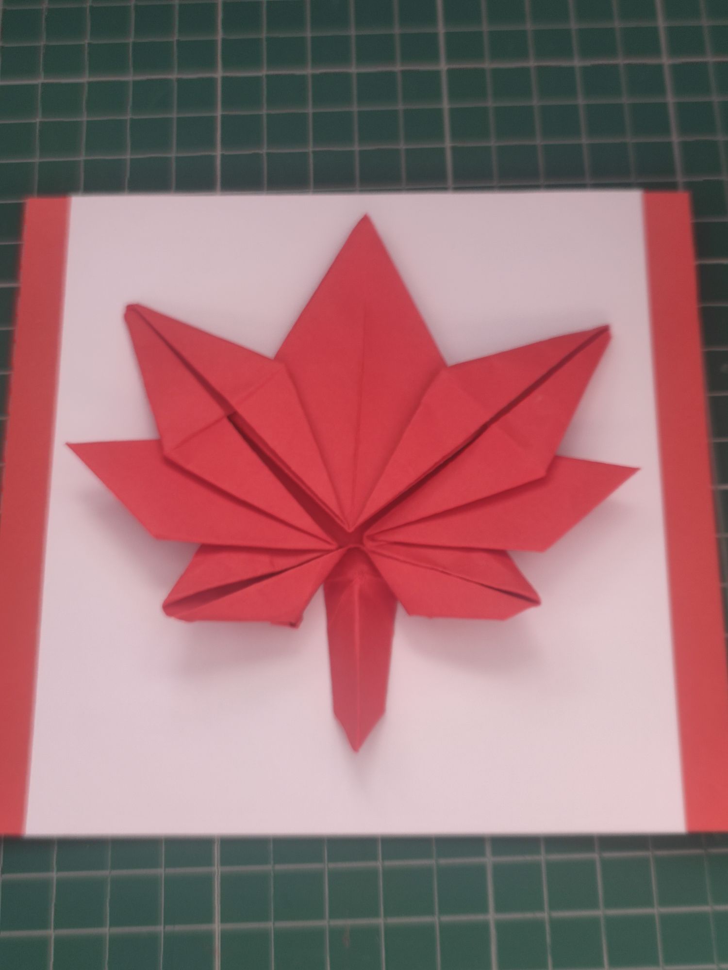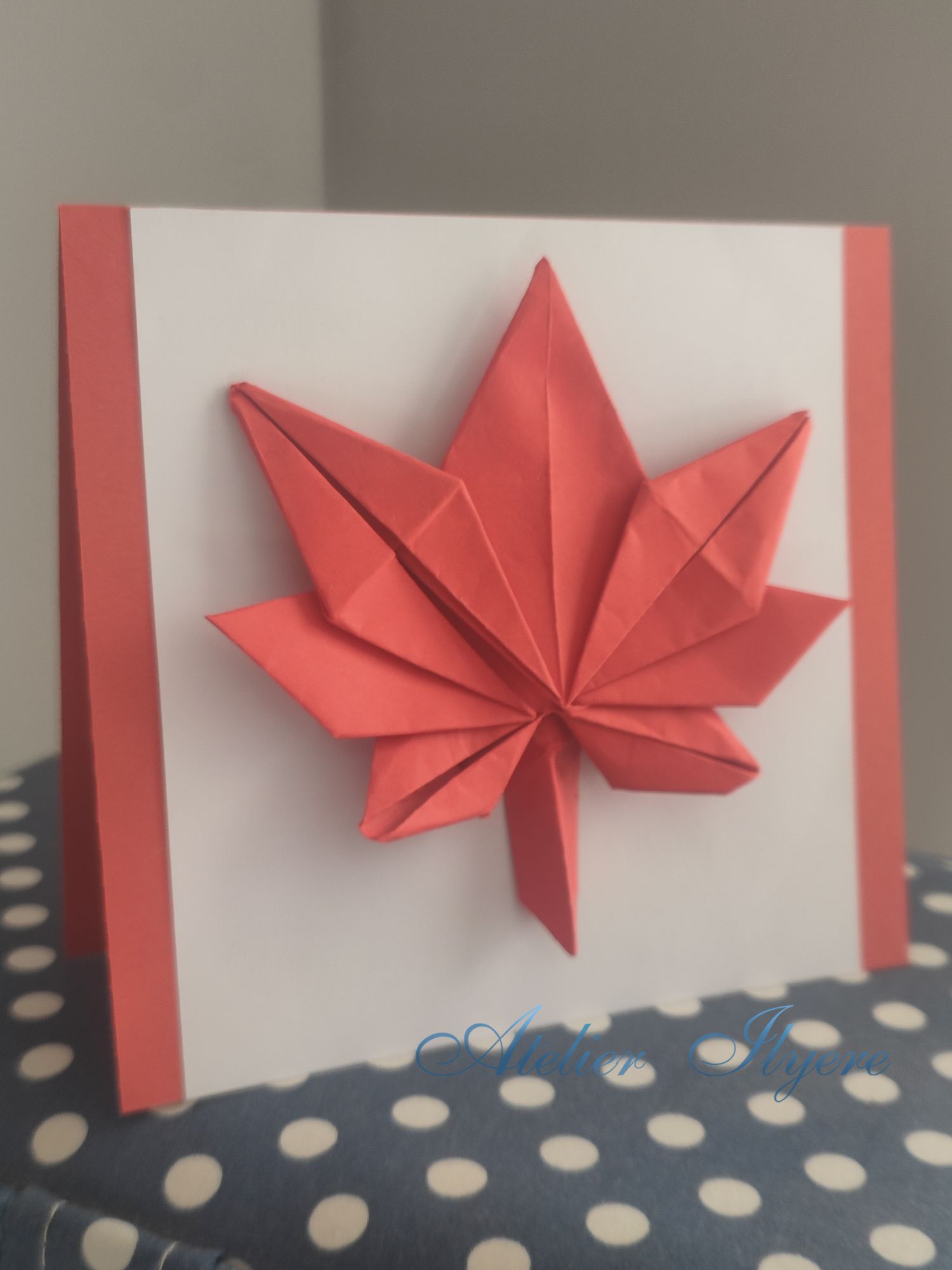I was asked to make a card for a friend who was leaving the UK for Canada, and it had to be done in less than three hours. It sure sounds like a lot of time, but I had not even begun the creative thinking process! Well, when you think of Canada, you think of the national flag, right? Surely someone out there had already come up with a way to fold a maple leaf and I can just fold it myself!