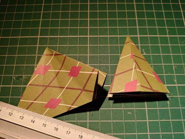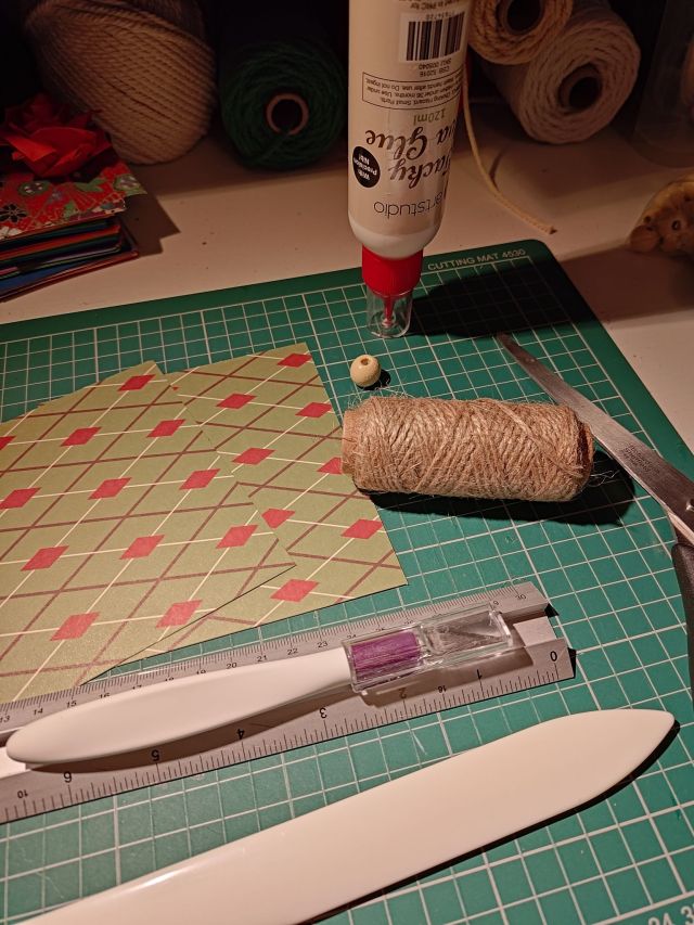 I liked the size of the bauble when I cut out 12cm squares – 15cm is usually the default size but the bauble came out rather large in my practice attempts.