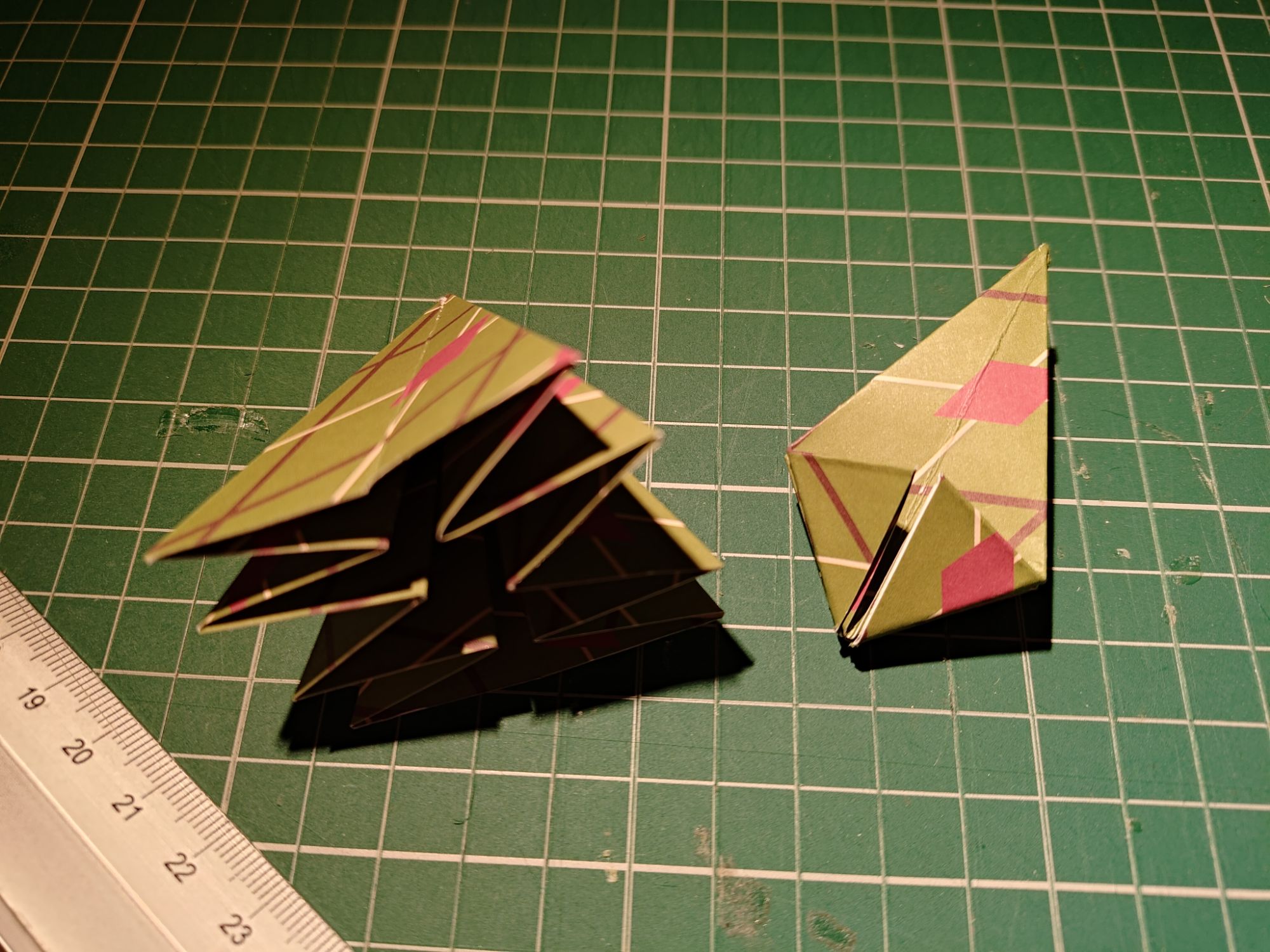 I used thicker paper because standard origami paper did not form a very solid model at the end. So because of this, a bone folder really helped with making the creases sharp.