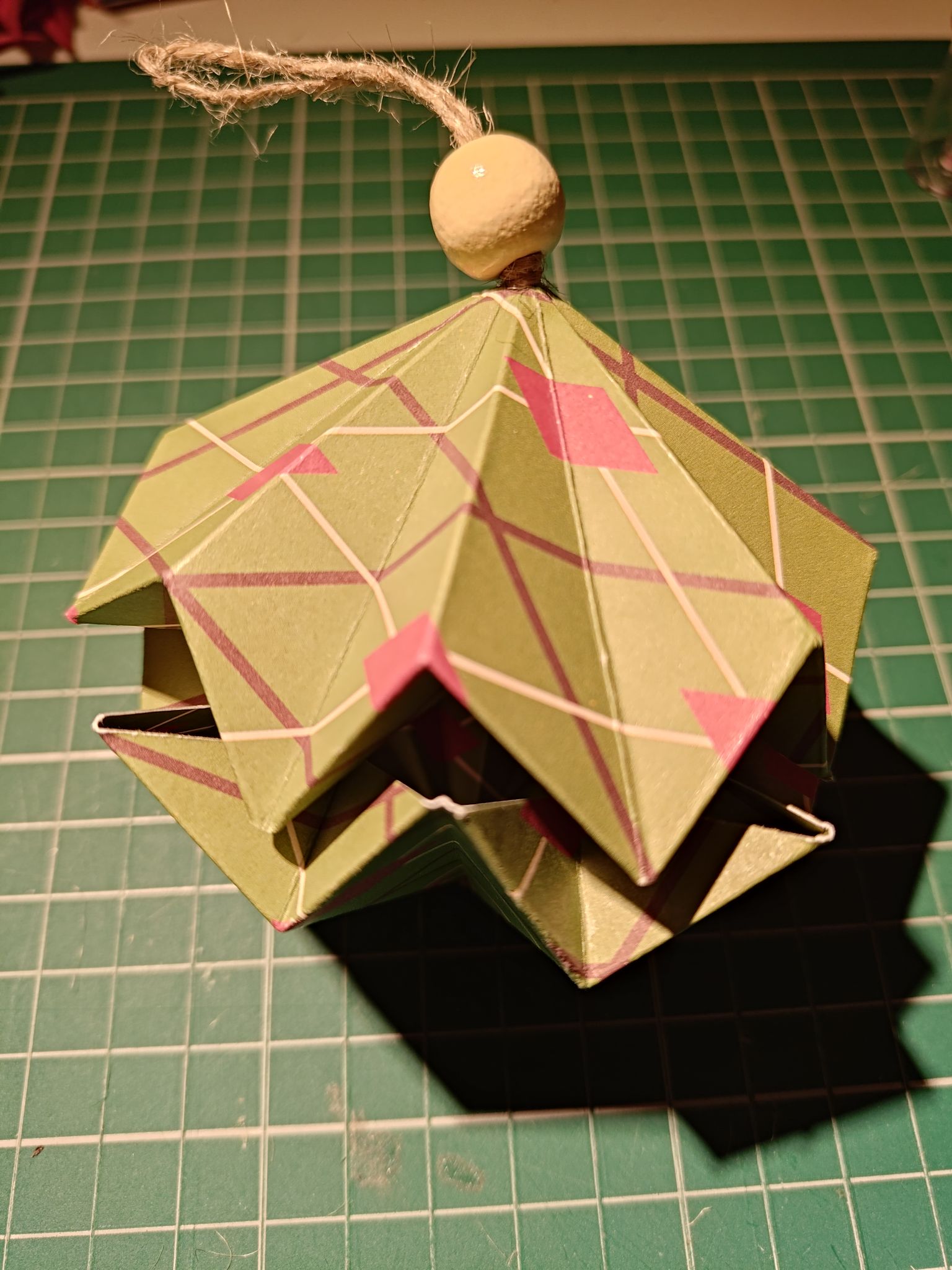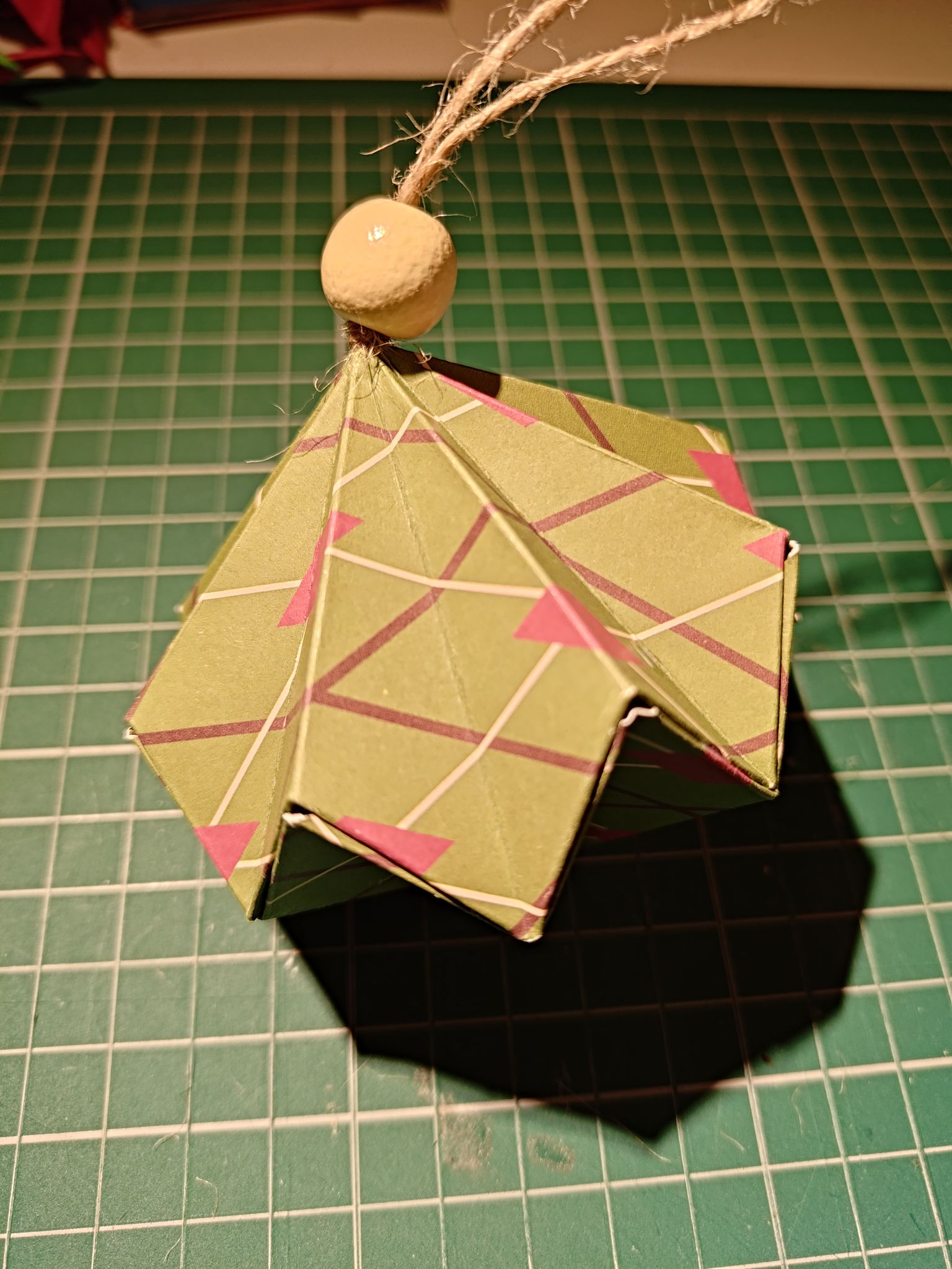 The tutorial I ended up following was this one by Origami library. You might argue that this isn’t true origami because it involves cutting and gluing, but it’s a lot simpler compared to the single sheet origami bauble design! I might try that one but only when I have the right size and kind of paper.