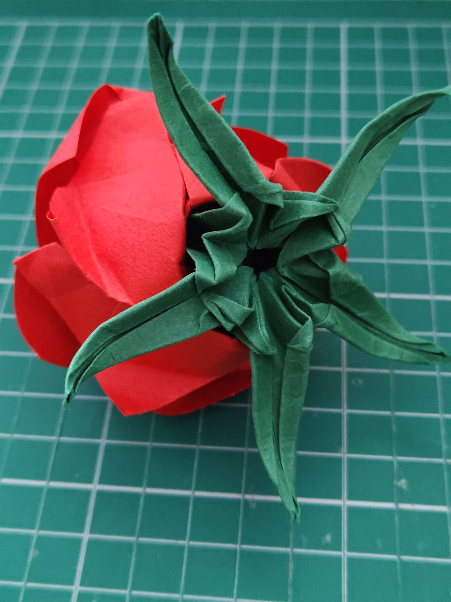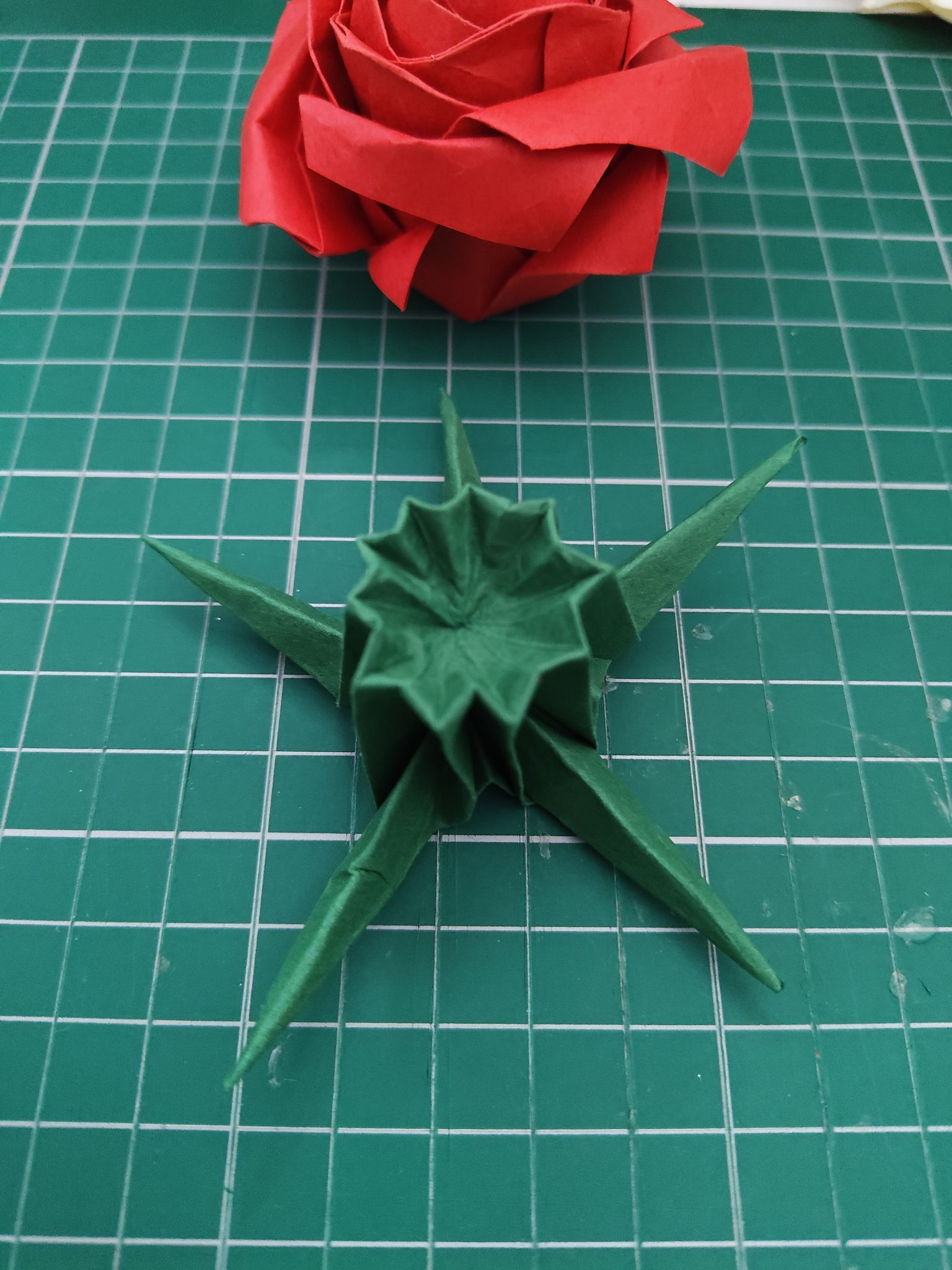 I also had some nice dark green paper to create a calyx. This was my second attempt and it fits perfectly!